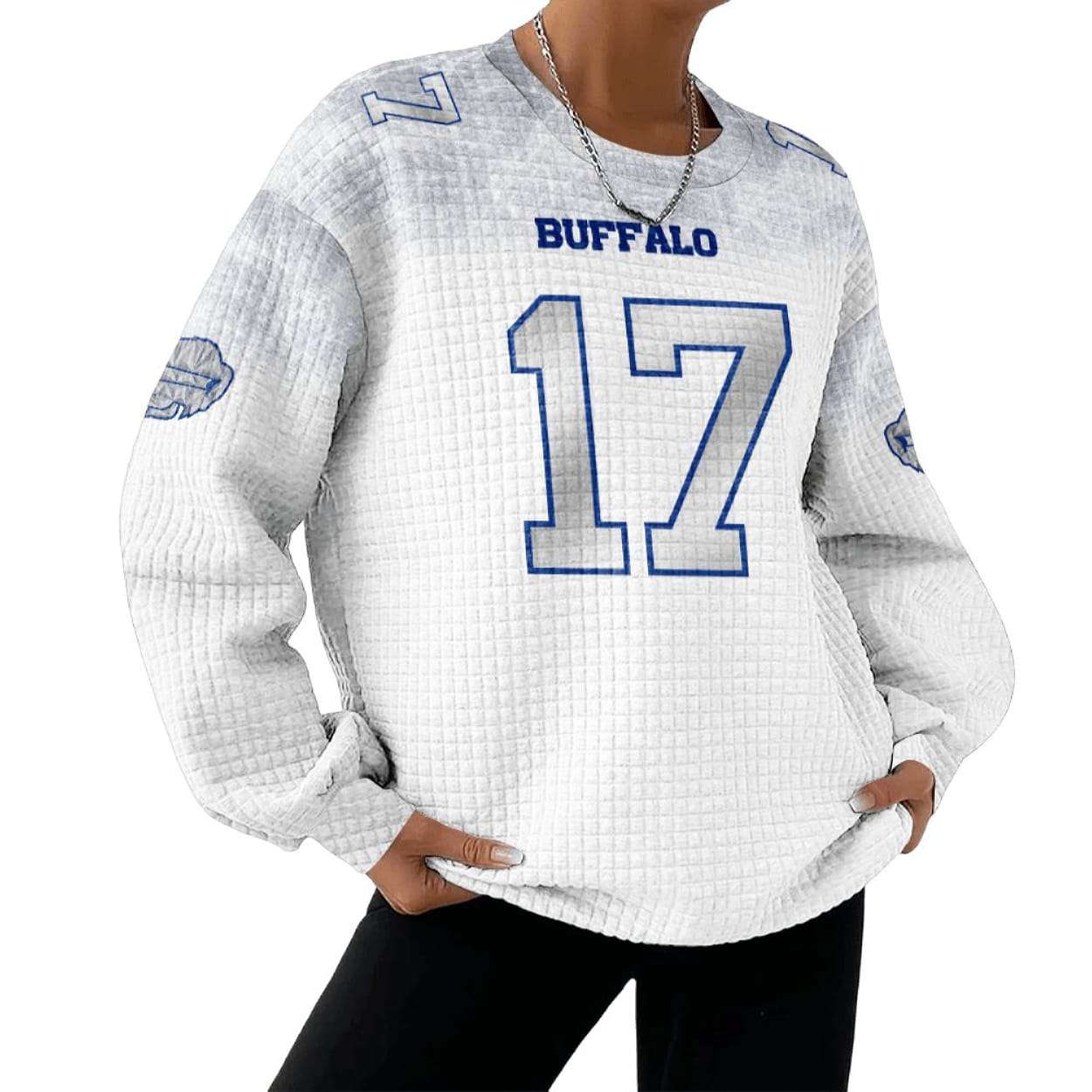 Unleash the intensity of 2025’s fiercest football rivalries with the 2025 Bill Football Rivalries Cold Front Waffle Sweatshirt. Featuring Buffalo’s iconic number 17, this piece channels quarterback grit, regional pride, and the stormy legacy of gridiron clashes that shaped American sports culture.