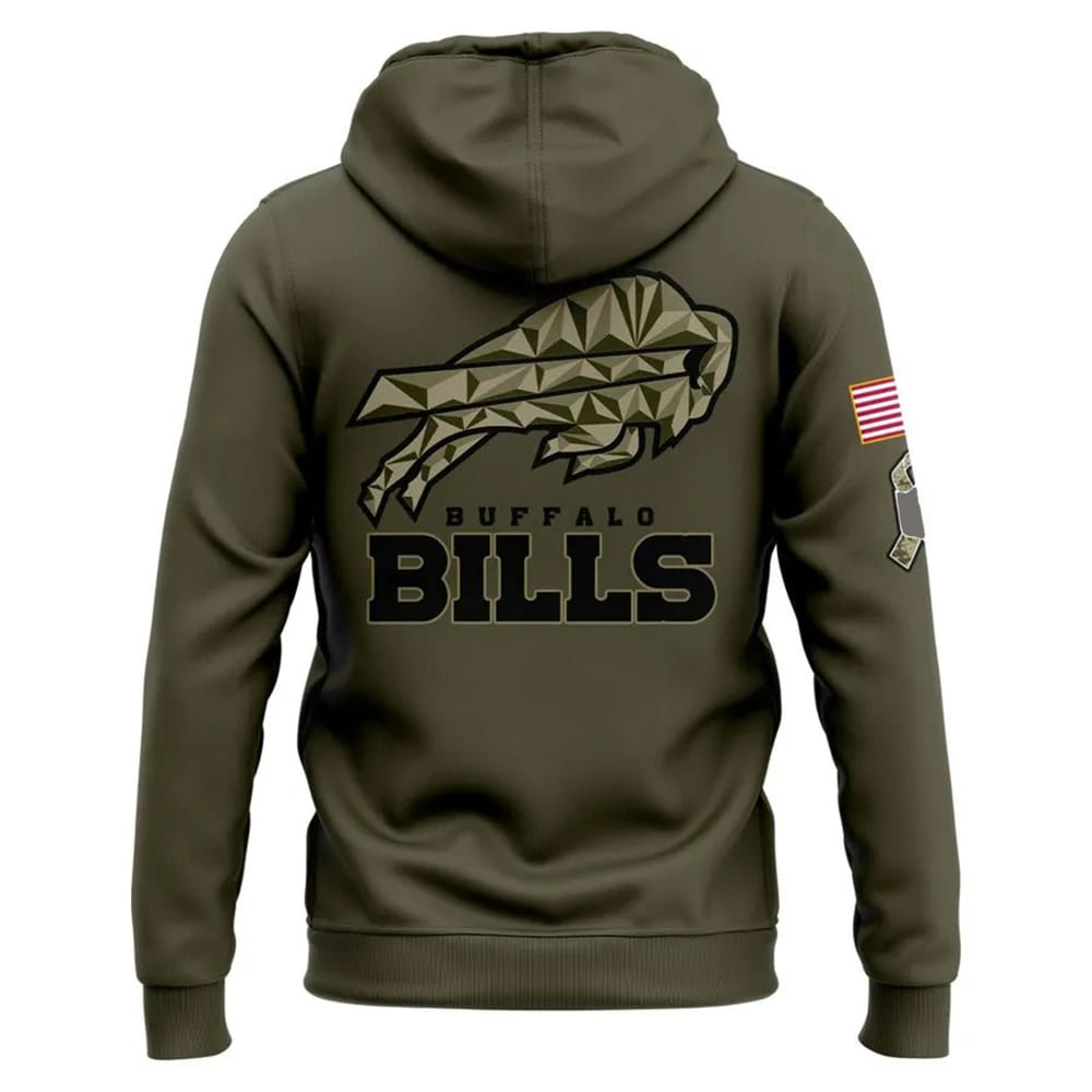 The 2025 Bills Salute To Service Hoodie highlights Buffalo’s deep ties to American resilience, blending football identity with military tribute. Its olive design mirrors uniforms of service members, a reminder of past and present sacrifices that protect freedom and sports culture alike.