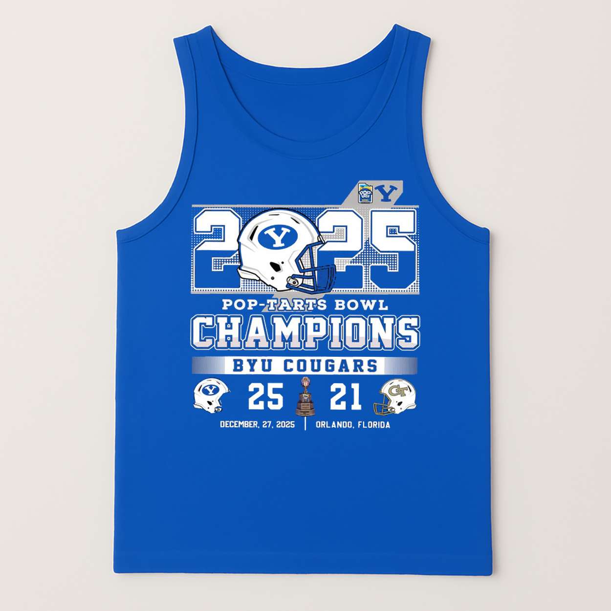 This shirt honors BYU’s hard-fought win over Georgia Tech in the 2025 Pop-Tarts Bowl, a game that showcased resilience and tactical brilliance. The final score—25 to 21—etched a new chapter in the Cougars’ postseason legacy.
