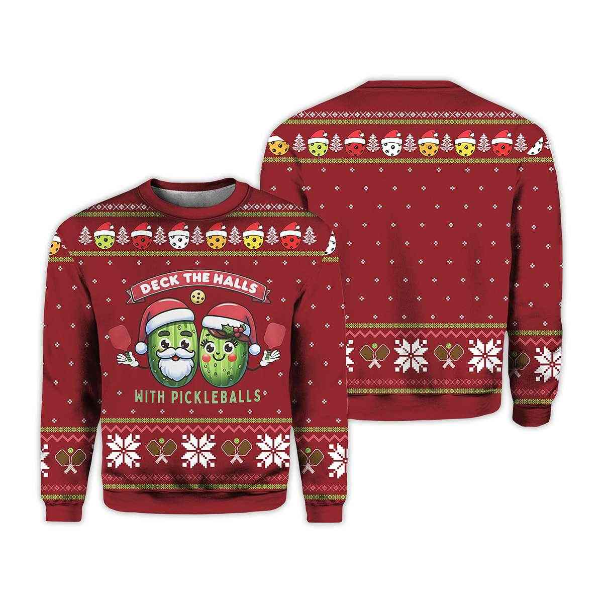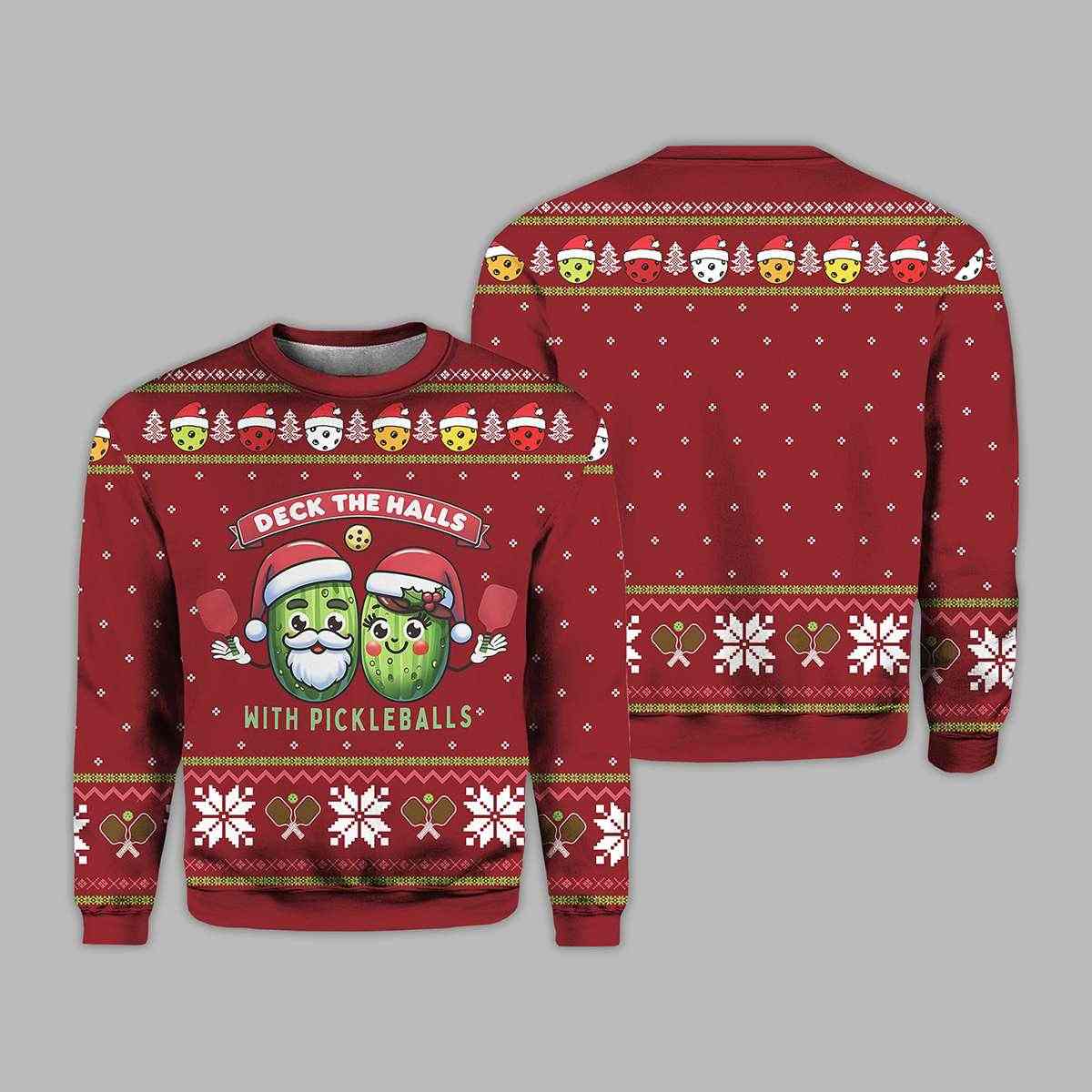 2025 Christmas Deck The Halls With Pickleballs Ugly Christmas Sweater – Jolly Dinks and Holiday Smashes