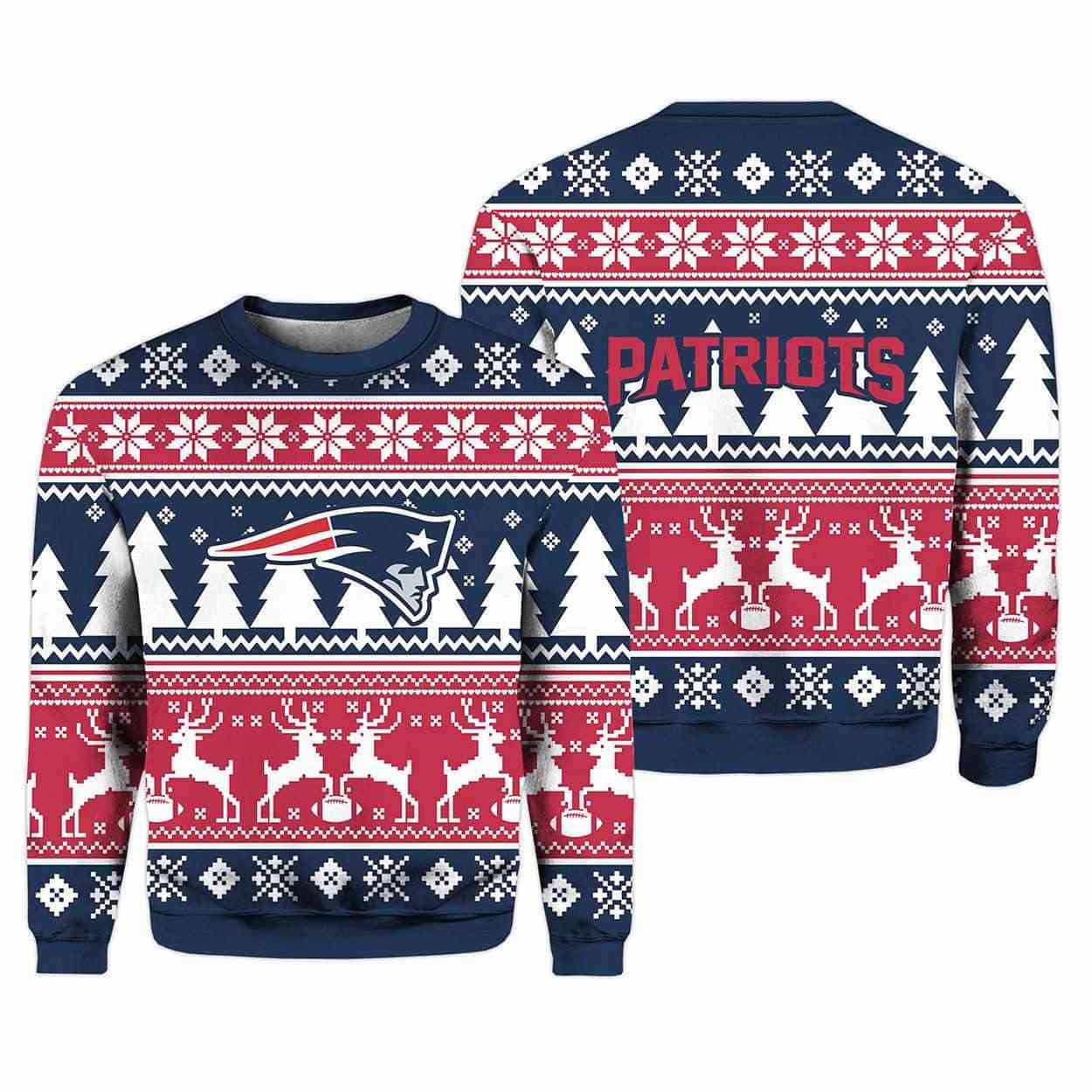 2025 Christmas Patriots Reindeer Football Ugly Sweater – Reindeer, Rivalries & Red Zone Magic