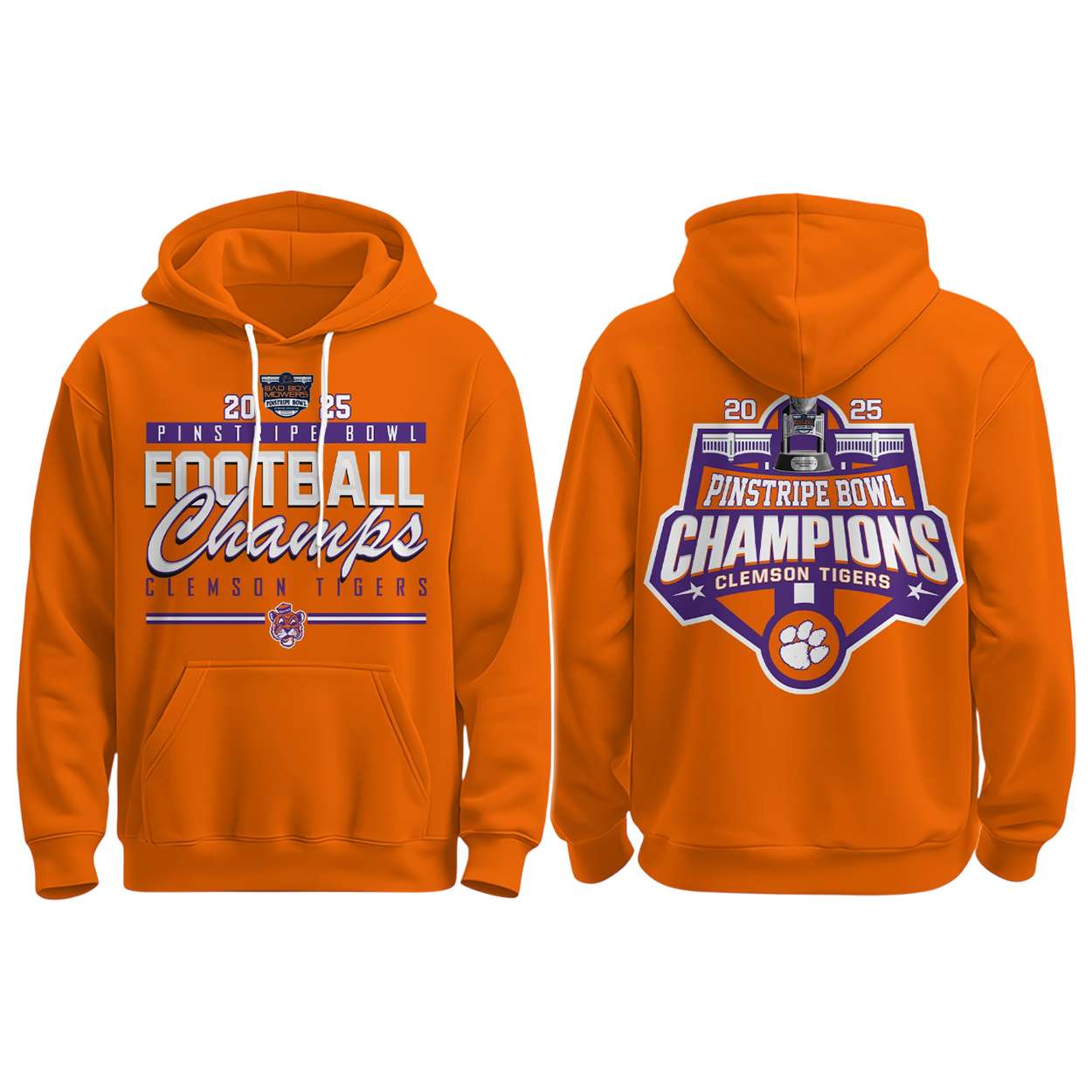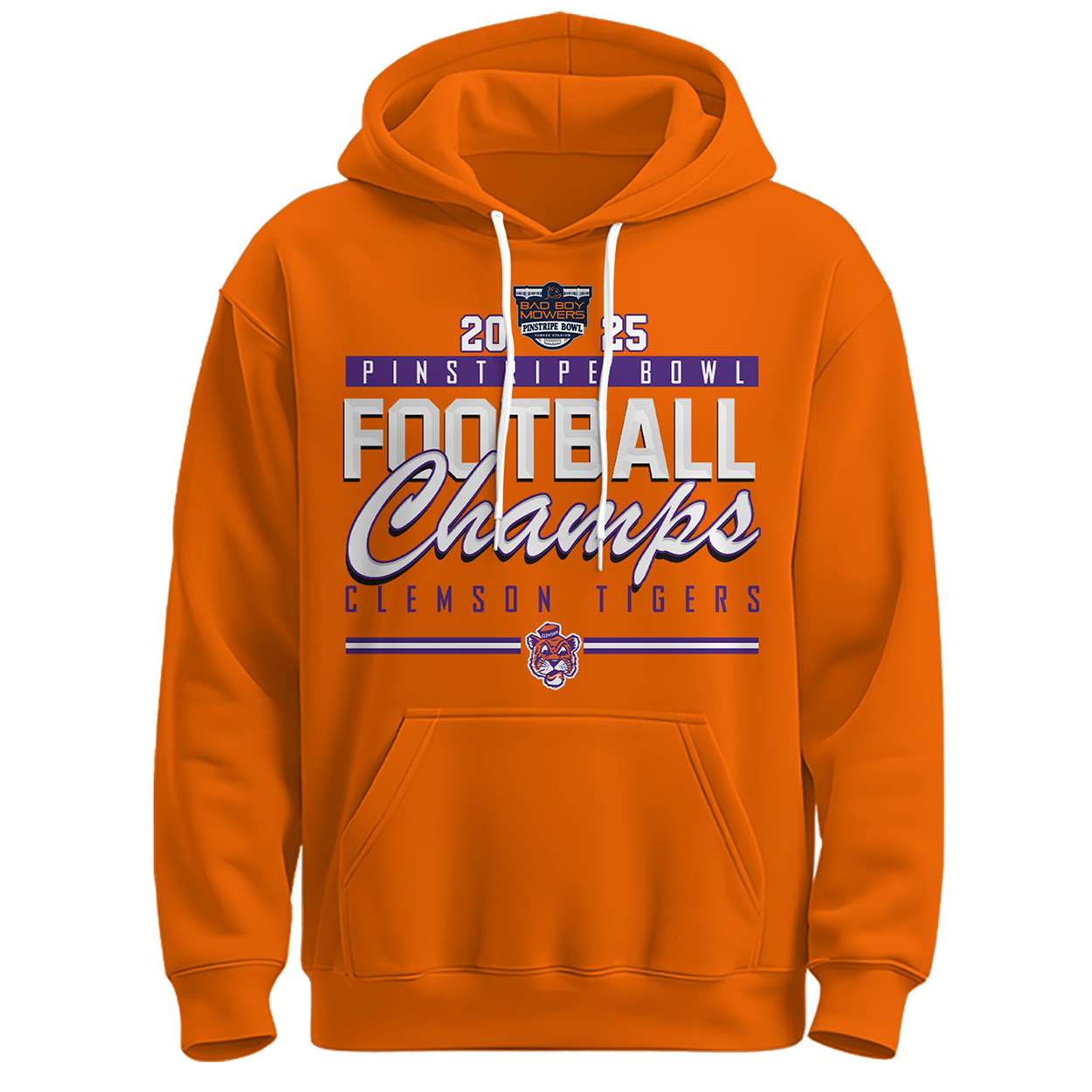 Honor the grit of the 2025 Clemson Tigers with the 2025 Clemson Tigers Pinstripe Bowl Champions Hoodie. Featuring bold graphics and historic references, this hoodie captures the spirit of a team that battled adversity, spotlighting Cade Klubnik’s record-breaking performance and the legacy of Tiger football.