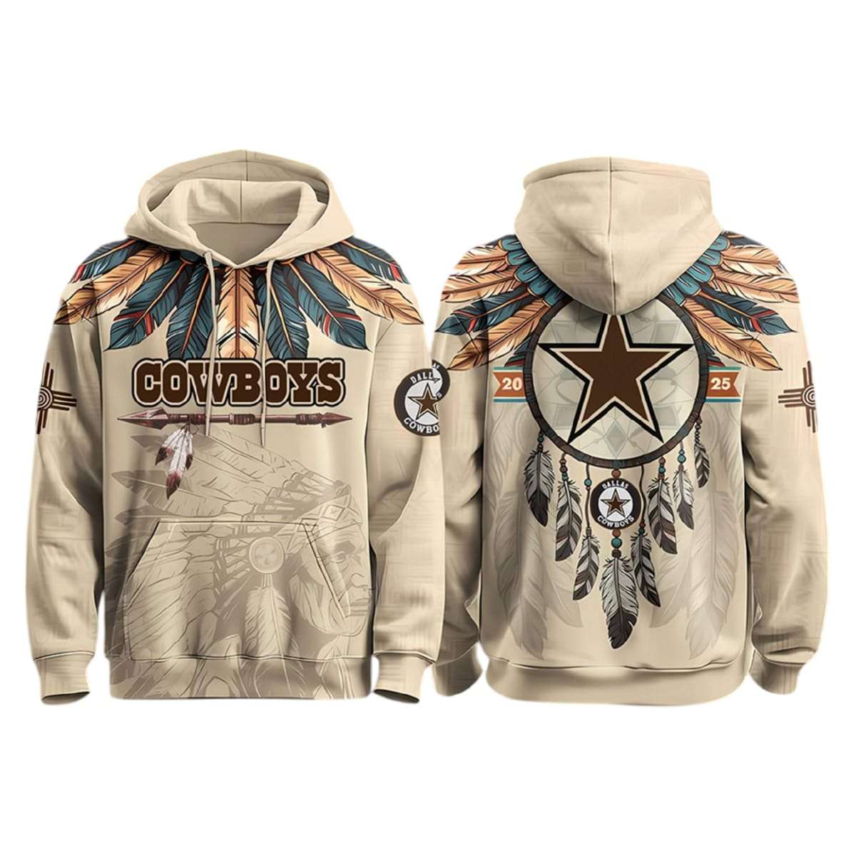 Discover the 2025 Cowboys x Native American Heritage Month Hoodie—a bold fusion of Western grit and Indigenous symbolism. Featuring dreamcatchers, tribal emblems, and historical motifs, this design pays tribute to resilience, legacy, and the stories woven into American soil.