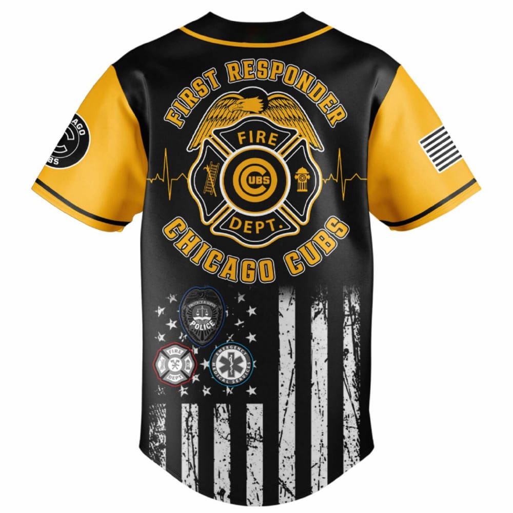 This special edition jersey commemorates the Cubs’ First Responders Night, a yearly event that acknowledges the tireless efforts of local heroes. With vibrant yellow sleeves and a bold black and white design, it showcases the iconic Cubs logo alongside patches representing emergency services, making it a powerful statement of unity and gratitude.