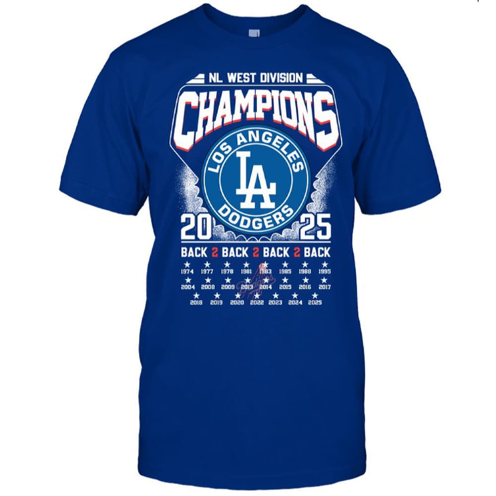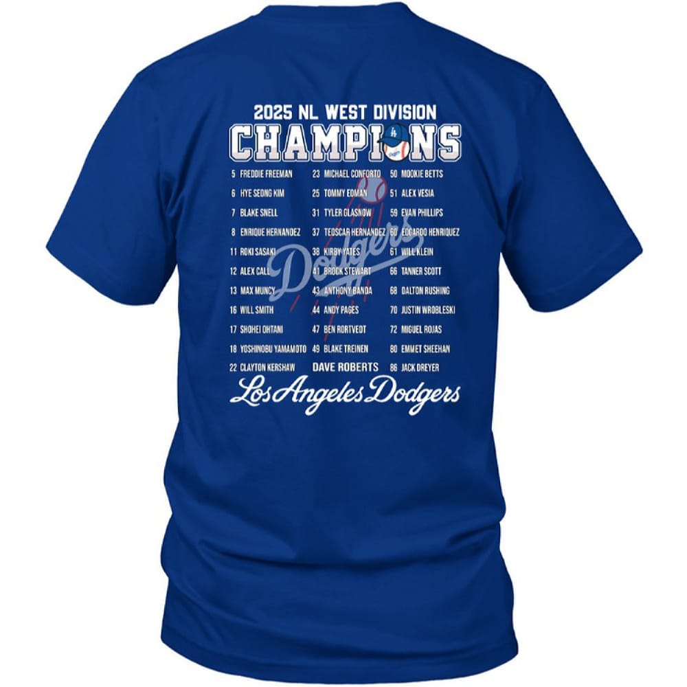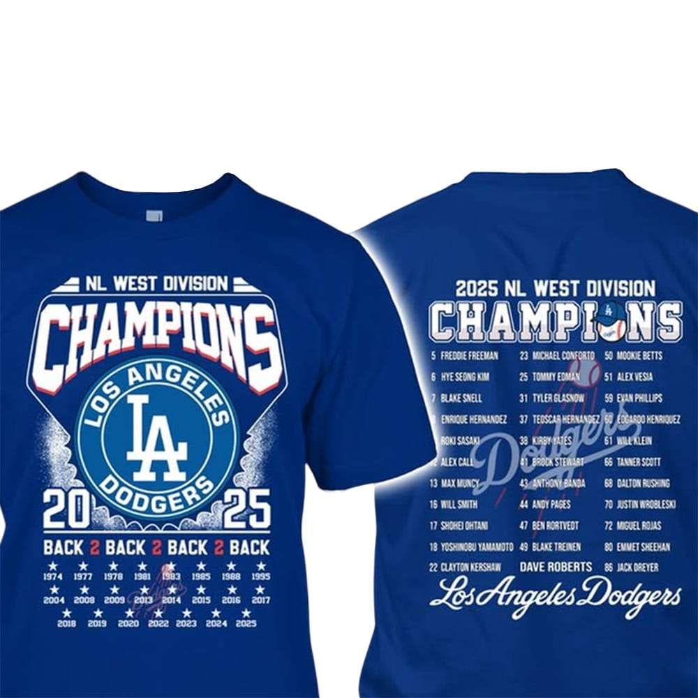 2025 Dodgers B2B2B2B NL West Division Champs Two-Sided Shirt – Legendary Roster & Historic Victory