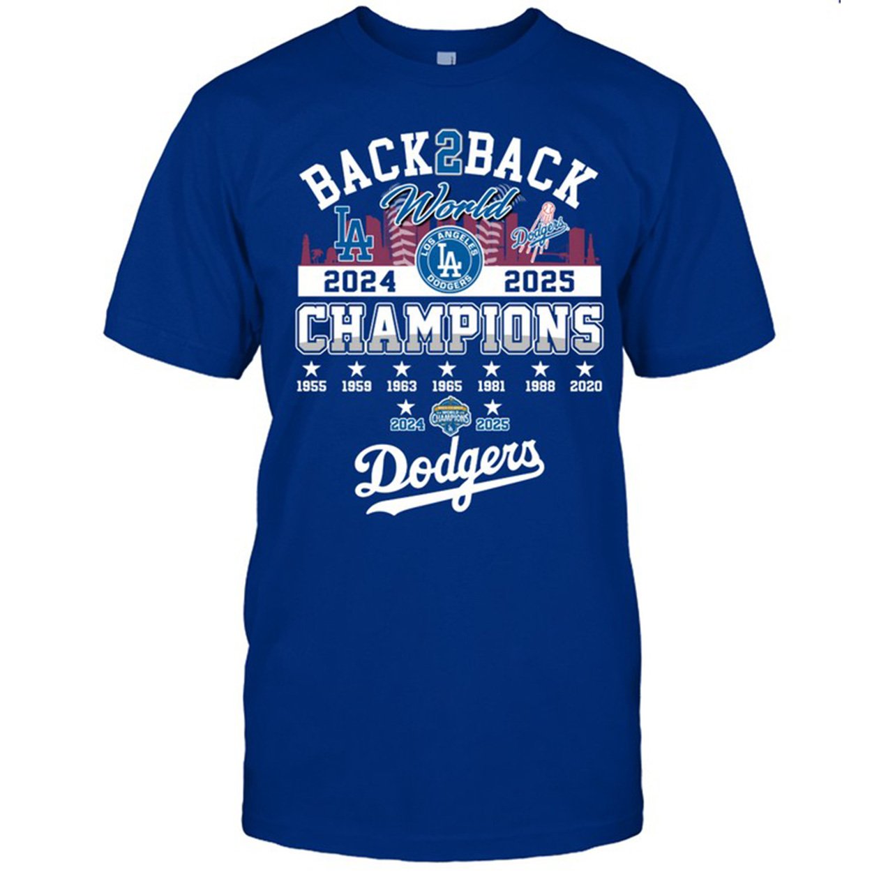 Commemorate the Dodgers’ epic 2025 World Series win with this 2025 Dodgers Back 2 Back World Champions 2 Sided Shirt featuring key players, historic championship years, and bold graphics. A tribute to resilience, teamwork, and the unforgettable Game 7 showdown.