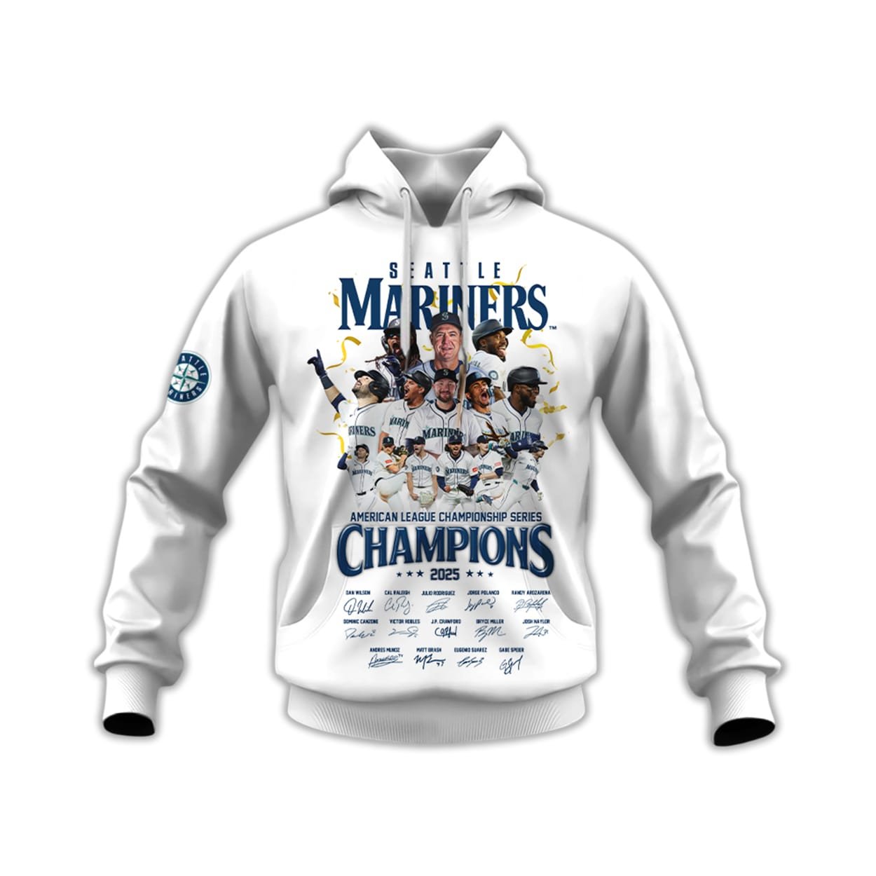 Commemorate the Seattle Mariners’ triumphant 2025 ALCS victory with this 2025 Mariners American League Champions Hoodie. Featuring iconic player imagery, autographs, and a nod to the team’s historic rise, it’s a must-have for fans who lived the moment and those who admire resilience.
