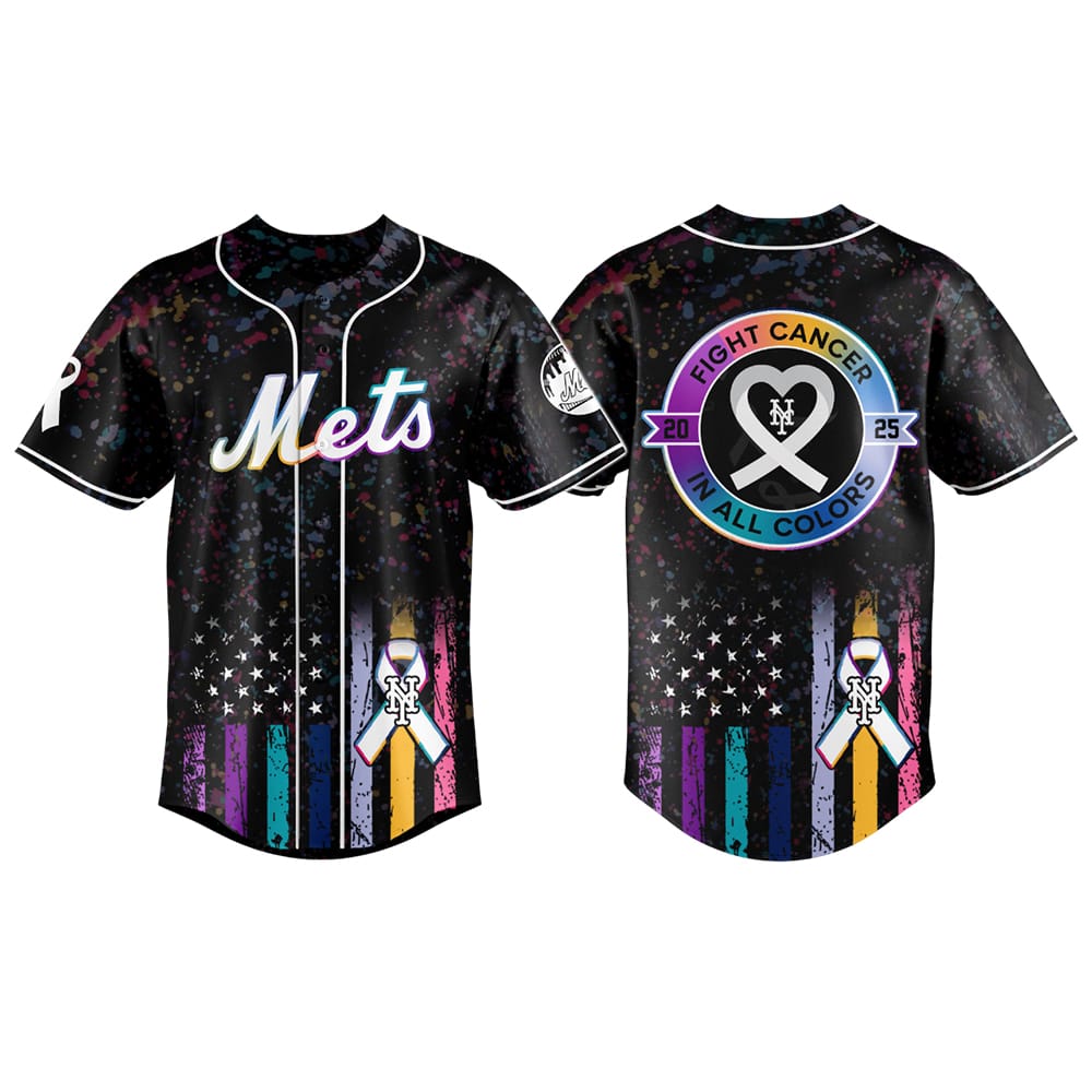 Show your support with the 2025 Mets Fight Cancer In All Colors Jersey. Designed with vibrant symbolism and powerful storytelling, this jersey unites baseball passion with the universal fight against cancer. Featuring bold team identity, historic awareness elements, and a tribute to resilience across all communities, it represents more than sports—it’s a statement of solidarity, remembrance, and hope. A unique piece for fans who believe in strength, unity, and compassion.