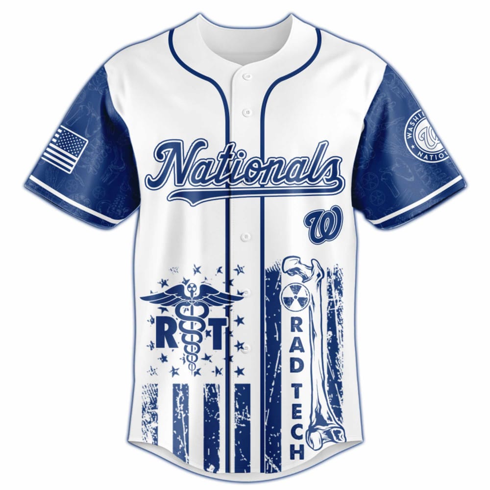 Wearing this jersey supports awareness for radiologic technologists and the essential healthcare services they provide daily. Events like Nationals Radiology Tech Night spotlight the challenges and triumphs of these professionals, encouraging support for medical staff and advancing public health education. By owning this jersey, you not only celebrate your favorite team but also stand with healthcare workers dedicated to saving lives through advanced imaging technology.