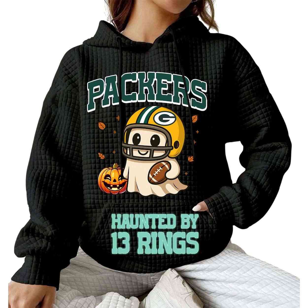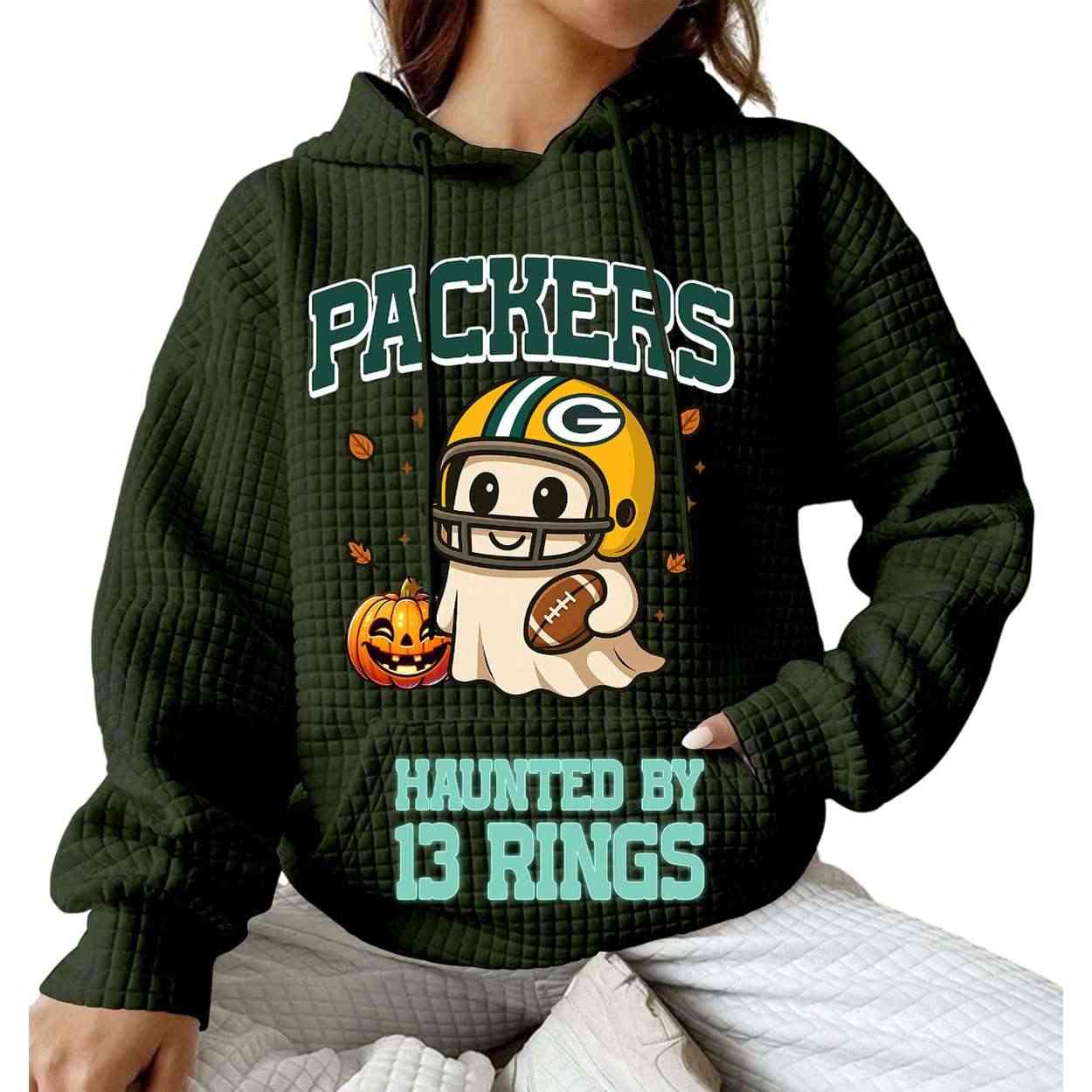 2025 Packers Haunted By 13 Rings Waffle Hoodie ā 2025 Halloween Edition