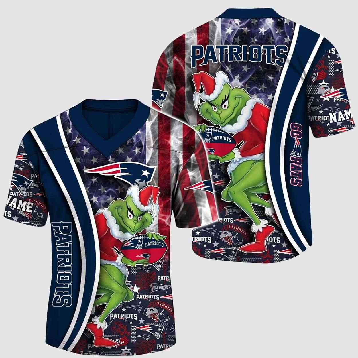 2025 Patriots Merry Grinchmas American Flag Jersey – Gridiron Mischief Meets Holiday Spirit