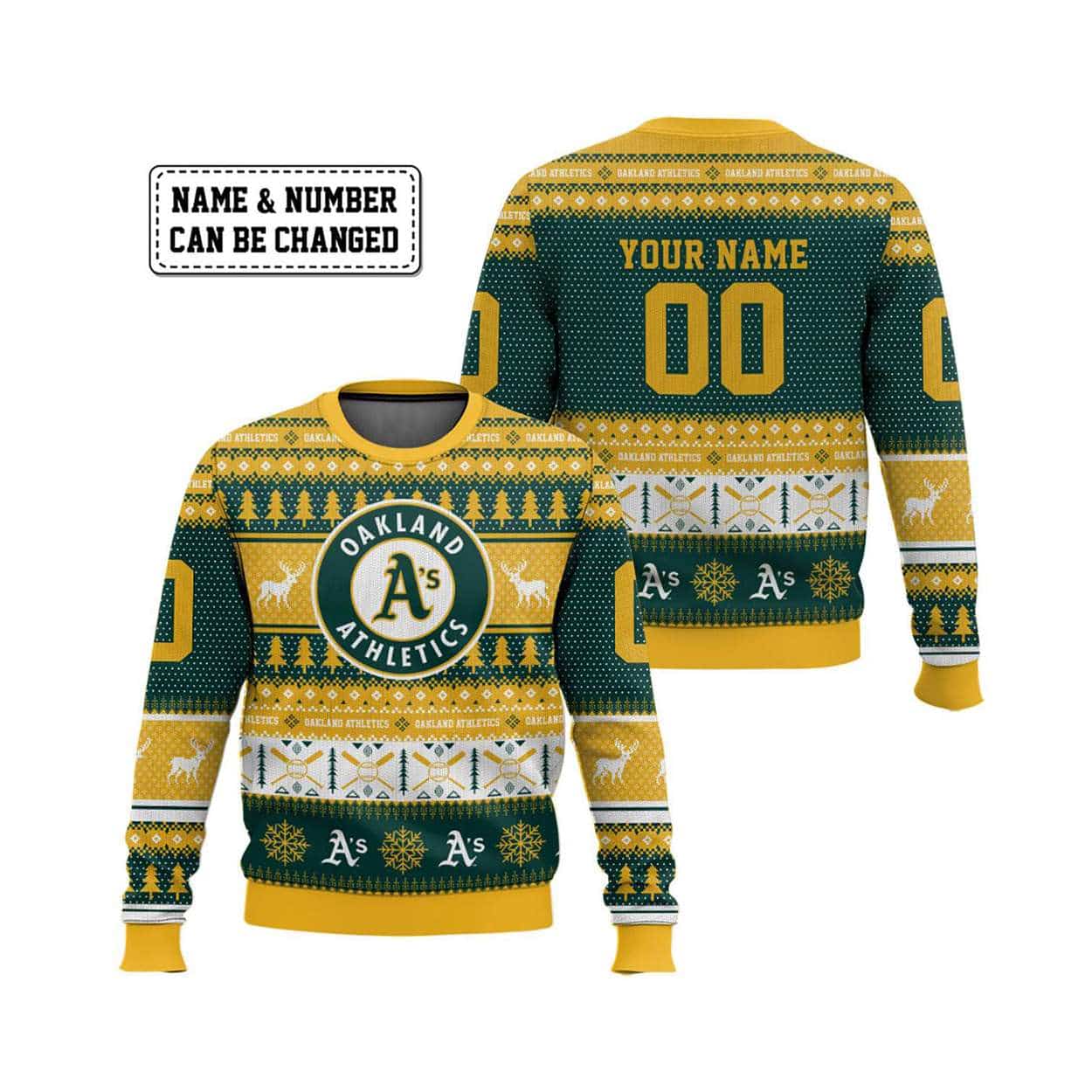 Show your Oakland Athletics pride with the 2025 Personalized Athletics Ugly Christmas Sweater. Featuring iconic team logos, festive patterns, and customizable name and number, this sweater blends baseball heritage with holiday flairâperfect for fans who value tradition, identity, and bold expression.