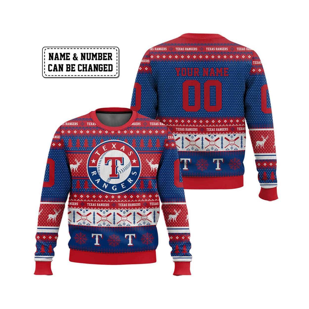 Show off your Texas Rangers pride this holiday season with the 2025 Personalized Rangers Ugly Christmas Sweater. Featuring iconic motifs and customizable name and number, this festive gear blends baseball legacy with winter charm—perfect for fans who cherish team spirit and tradition.