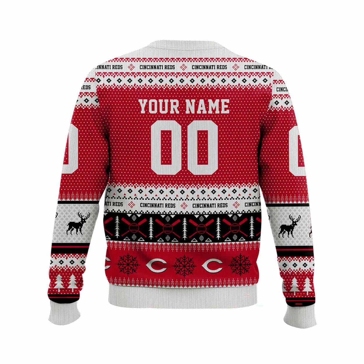 Show your Reds pride with the 2025 Personalized Reds Ugly Christmas Sweater, blending festive flair and baseball legacy. Customize with your name and number while showcasing iconic symbols tied to Cincinnati’s rich sports culture and winter traditions. A must-have for fans.