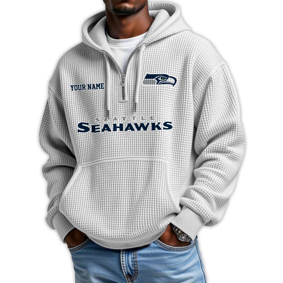 2025 Personalized Seahawks Quarter Zip Waffle Hoodie – Built for the Bold