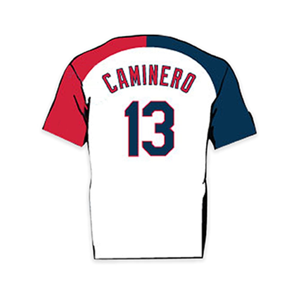 The jersey features bold red, white, and blue colors, mirroring the Dominican flag’s patriotic hues, making it an iconic piece for any fan. On the back, the name “Caminero” is proudly displayed, a nod to one of the most promising young players emerging from the Dominican Republic. His inclusion brings a fresh, personal touch to the design, celebrating not just a team but also a new generation of talent continuing the legacy of Dominican excellence in baseball.