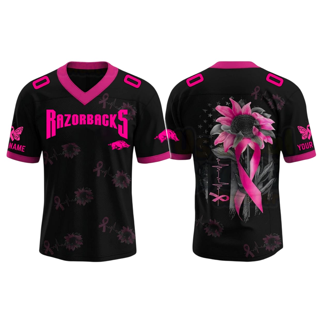 Honor courage and resilience with the 2025 Razorbacks Breast Cancer Awareness Month Jersey. Designed in striking black and pink, it symbolizes unity in the fight against breast cancer. Perfect for Razorbacks fans and advocates of awareness, this limited edition jersey reflects hope, remembrance, and empowerment throughout Breast Cancer Awareness Month.