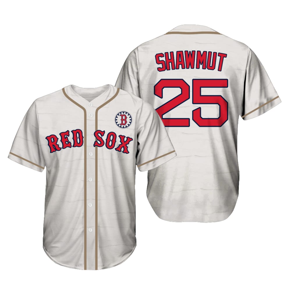 The 2025 Red Sox Native American American Indian Celebration Jersey Giveaway pays tribute to the rich cultural legacy of Native American communities, commemorating their contributions to the region’s history. Named after Shawmut, a historical Native American term for Boston, this jersey honors the area’s indigenous roots. Its crisp white base is accented with a classic red “Red Sox” script and a traditional logo, paired with gold trim for a timeless look. The bold red number 25 and “Shawmut” on the back add a personalized touch, blending historical reverence with a sleek, modern baseball style that fans will cherish.