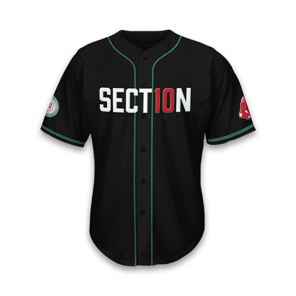 During the highly anticipated Section 10 Night, each attendee received a limited-edition jersey featuring a striking two-tone gradient across the torso, accented by Fenway’s iconic Chevron lines down the sleeves. The front displays the classic “RED SOX” wordmark arching over a subtle watermark of Big Papi’s silhouette in the background—an homage to the team’s storied past. On the back, the number “10” stands out in bold block font, flanked by embroidered city skyline outlines of Boston’s Back Bay and Fenway neighborhoods. This jersey marries modern design with authentic ballpark atmosphere, perfect for wearing at future games, sports bars, or around town.