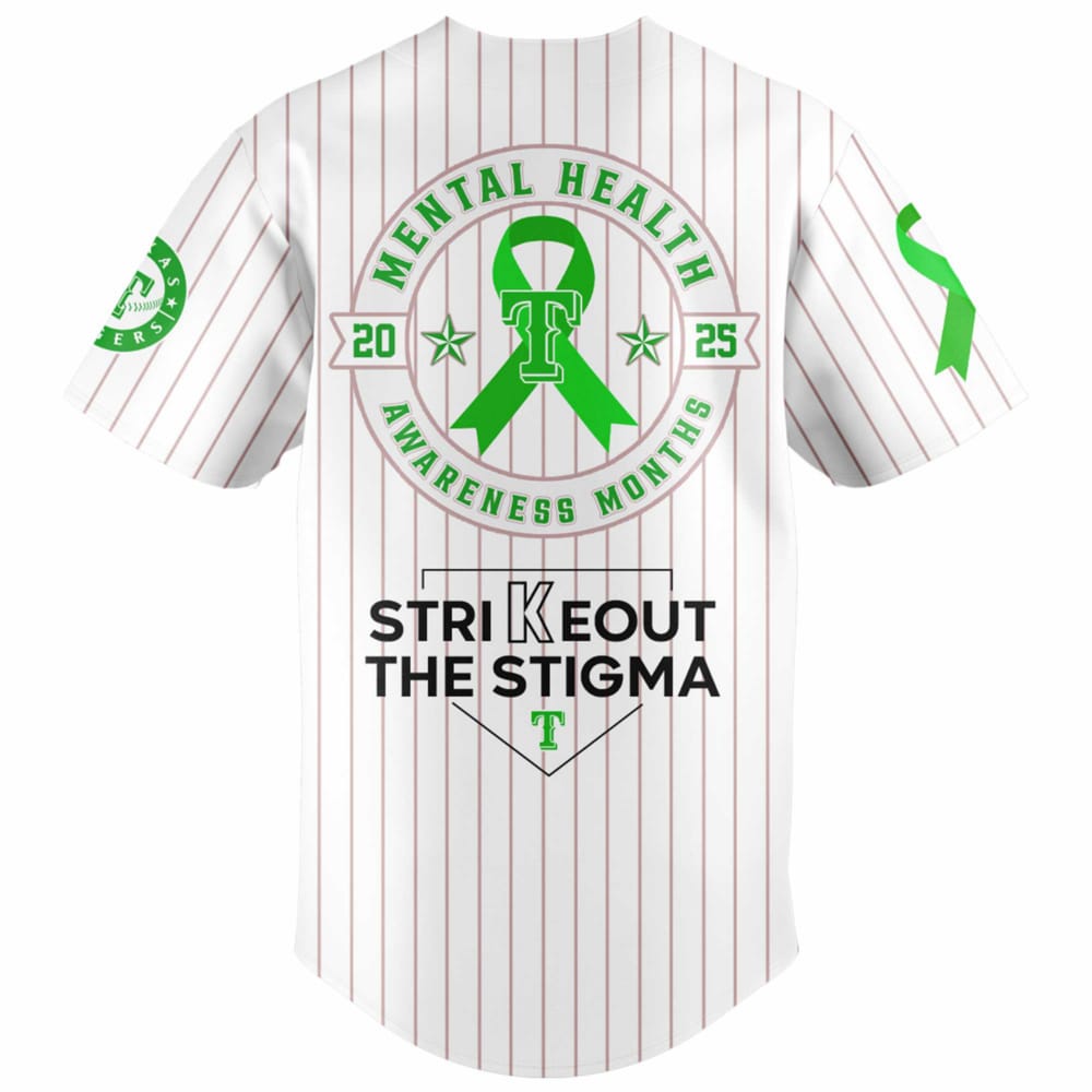 On the back, the jersey boldly features “Strikeout the Stigma,” using baseball as a metaphor to knock out negative perceptions surrounding mental health. The integration of the iconic Rockies logo connects sports passion with social advocacy, making it a meaningful piece for fans and supporters.