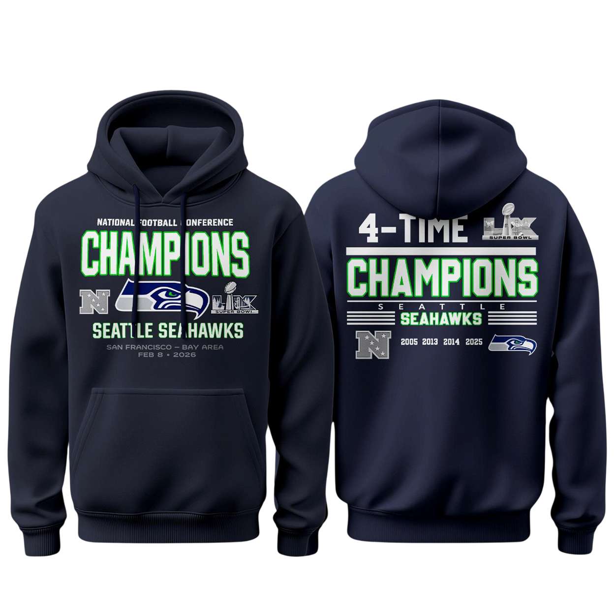2025 Seahawks 4-Time NFC Champions Hoodie – Built on Legacy