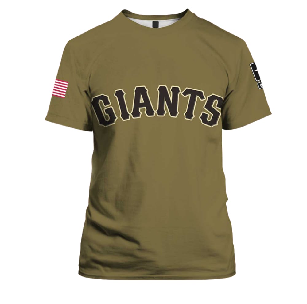 The 2025 SF Giants Military Appreciation Night Shirt commemorates a proud annual tradition that unites sports and service. This limited-edition release honors the brave men and women of the U.S. military while celebrating the enduring spirit of San Francisco Giants baseball. Styled in a military-inspired olive drab color, the shirt features “GIANTS” boldly printed on the front and a striking circular crest on the back. The crest showcases the interlocking “SF” logo surrounded by stars and service branch names—Army, Marine Corps, Navy, Air Force, Coast Guard—creating a powerful visual tribute to those who serve.
