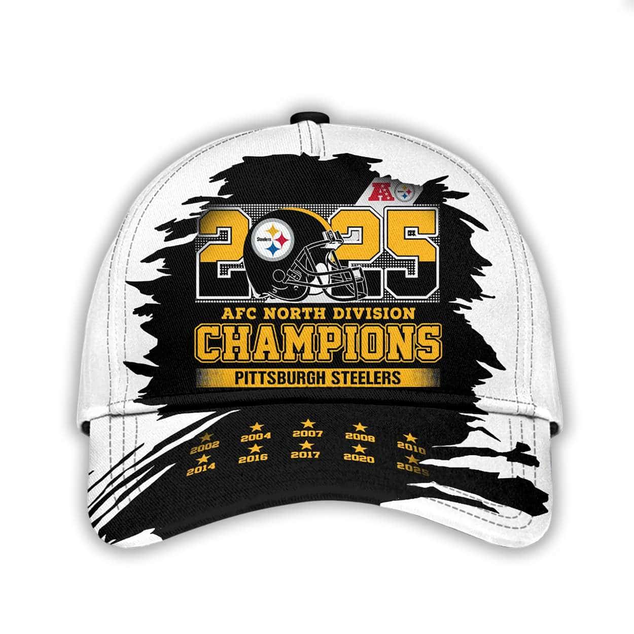 Show your pride in Pittsburgh’s 2025 AFC North triumph with this 2025 Steelers NFL AFC North Champions Classic Cap. Featuring bold embroidery and historic championship years, it connects fans to a legacy of grit, teamwork, and unforgettable moments. A timeless tribute to black and gold excellence.