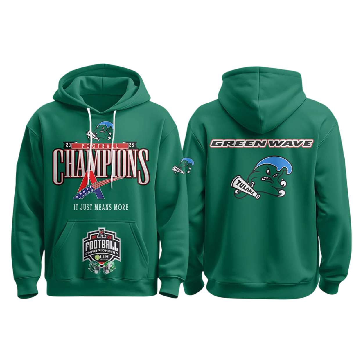 This hoodie marks Tulane’s 34–21 triumph over North Texas in the 2025 American Conference Championship. The front design features AAC insignia and the phrase “It Just Means More,” echoing the intensity of Yulman Stadium on that unforgettable December night.