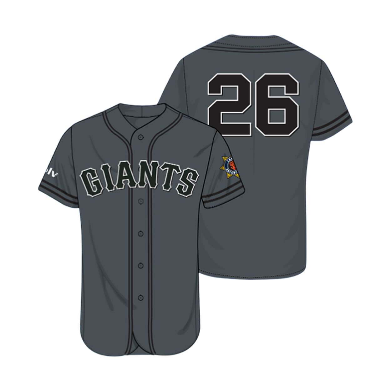 This 2026 Giants jersey commemorates Law Enforcement Appreciation Night with striking visuals and meaningful symbols. The bold “GIANTS” lettering and the number 26 reflect unity and resilience, echoing the team’s enduring connection to its city and fans.