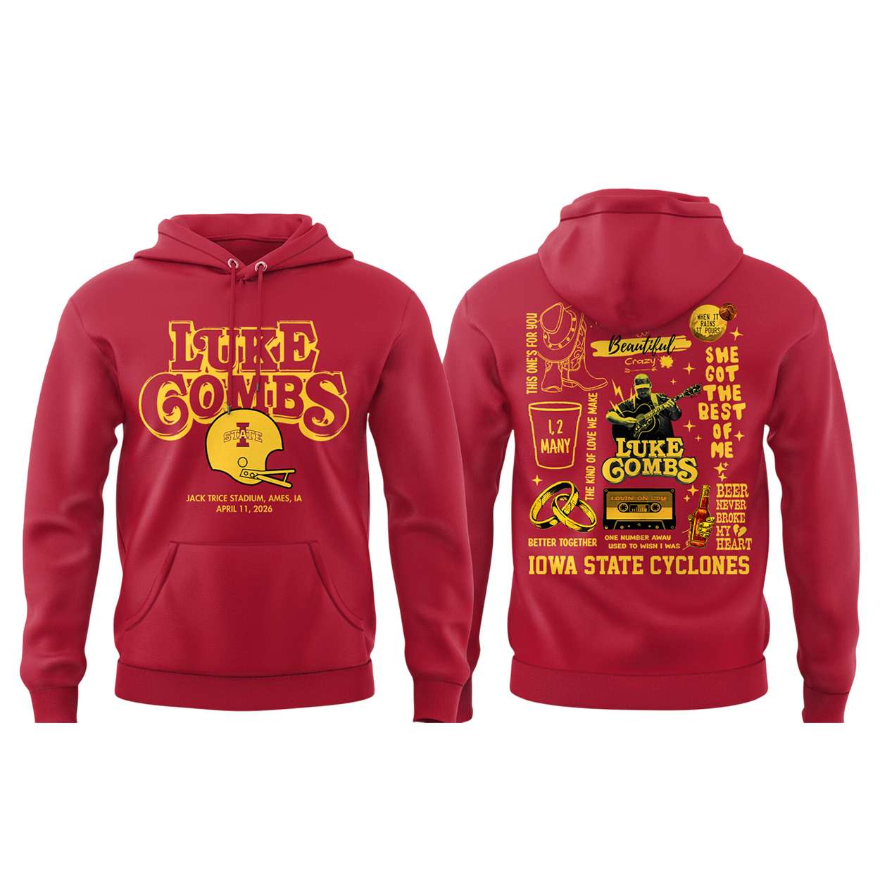 The front design highlights Luke Combs alongside the Iowa State Cyclones, marking his unforgettable show at Jack Trice Stadium. Fans recall the night as a cultural crossroad where country music and football passion merged, creating memories that still resonate.