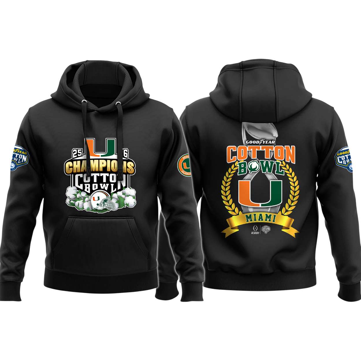 Honor the Hurricanes’ 2026 Cotton Bowl triumph with this 2026 Miami Cotton Bowl Champions Hoodie. Featuring iconic Miami graphics and historical nods, it connects fans to the legacy of college football, community pride, and the voices that shaped the University of Miami’s enduring impact.