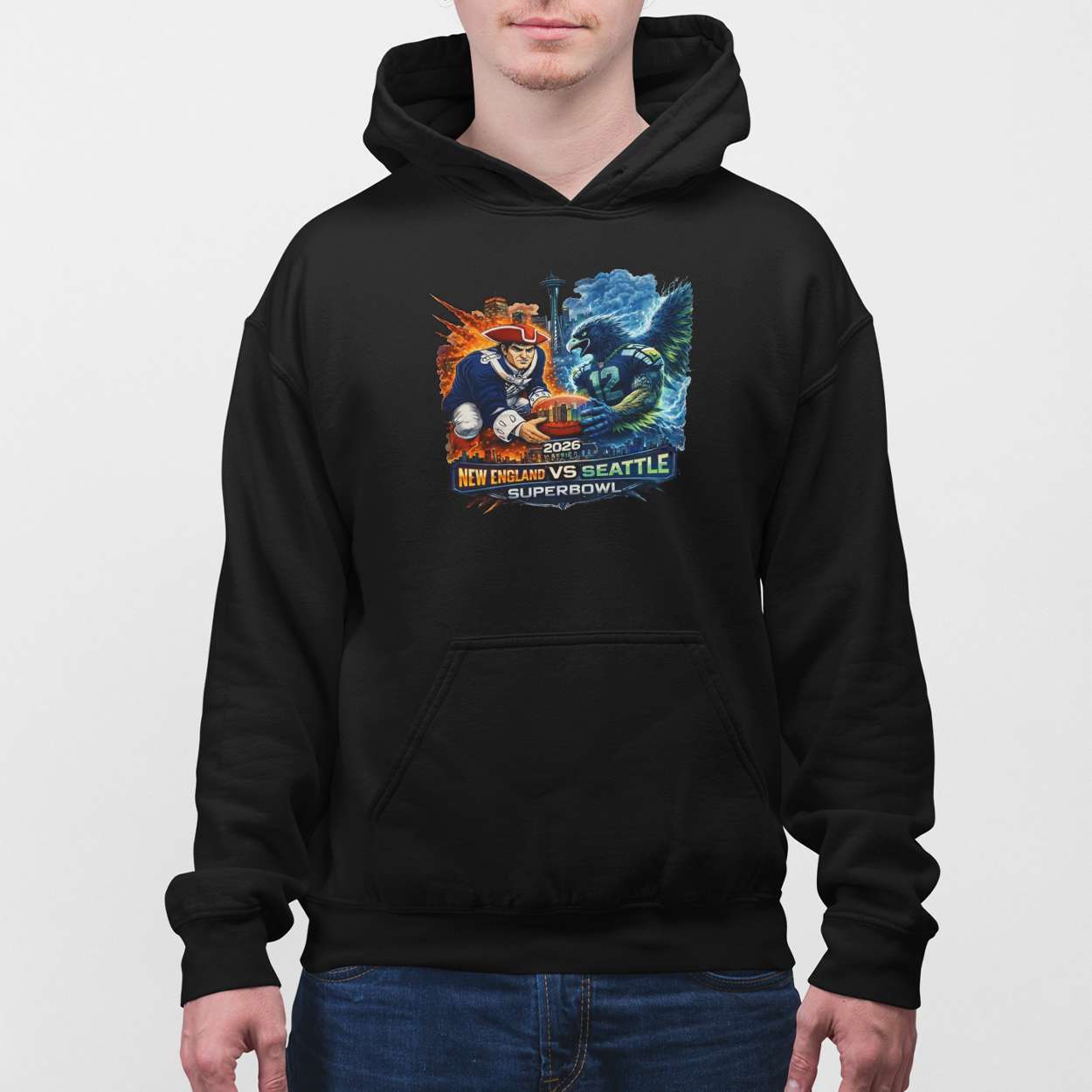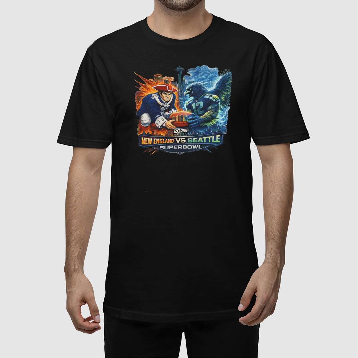 Relive the intensity of the 2026 Super Bowl clash with this 2026 Super Bowl Seahawks Vs Patriots Shirt. Featuring bold mascots, iconic skylines, and fierce energy, this design captures the rivalry, regional pride, and unforgettable showdown that captivated fans across the nation.