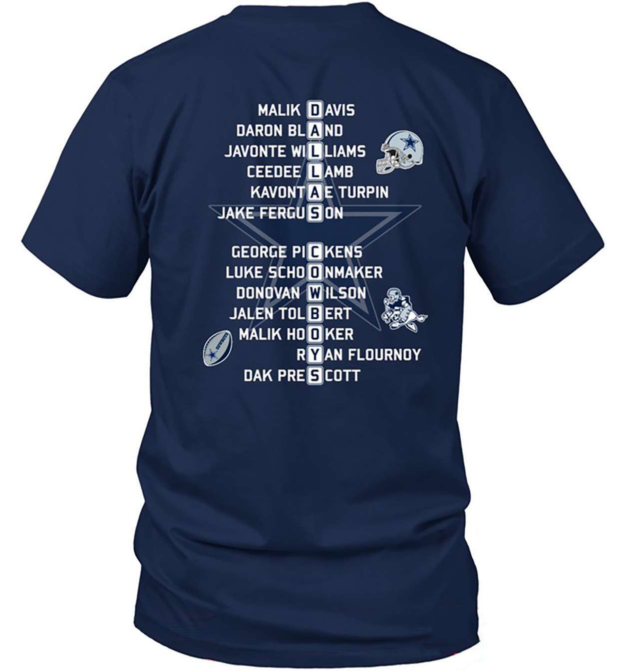 On the back, a curated list of players like CeeDee Lamb, Dak Prescott, and Malik Hooker forms a hidden tribute: “COWBOYS NATION.” Each name reflects the grit and unity that powered this unforgettable win.
