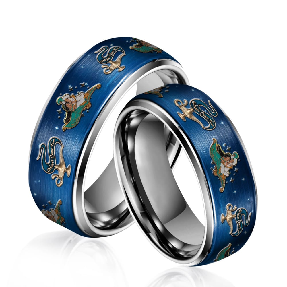 Celebrate the magic of possibility with our Aladdin Silver Tungsten Rings Gift For Fans – the perfect gift for devoted fans. Each midnight-blue band features Aladdin, Jasmine, the magic lamp and swirling star motifs, capturing the 1992 Disney classic that won two Oscars and inspired millions. Join a global community that believes courage can rewrite destiny and love can rise above social barriers. Limited-run design, fan-approved, ethically produced, and ready to ship worldwide – let this ring keep your “diamond in the rough” spirit shining.
