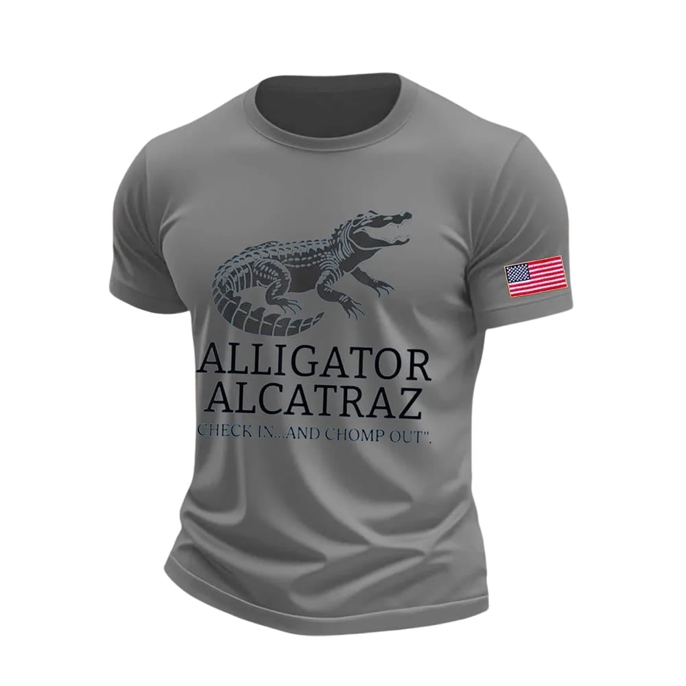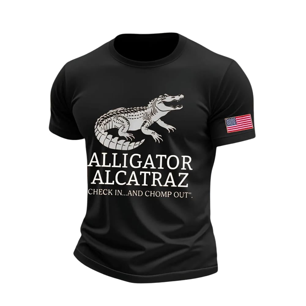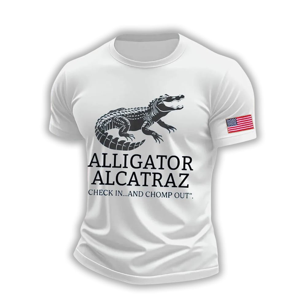 The Alligator Alcatraz Check In And Chomp Out Shirt isn’t just edgy—it’s a wearable protest. Inspired by the real-life immigration detention center built in Florida’s Everglades, this shirt features a snarling alligator as both mascot and metaphor. Surrounded by python-infested swamps and political firestorms, the facility—nicknamed “Alligator Alcatraz”—became a symbol of controversial policy and environmental defiance. The gator, native to the region, represents nature’s resistance to human control and the primal instinct to survive.