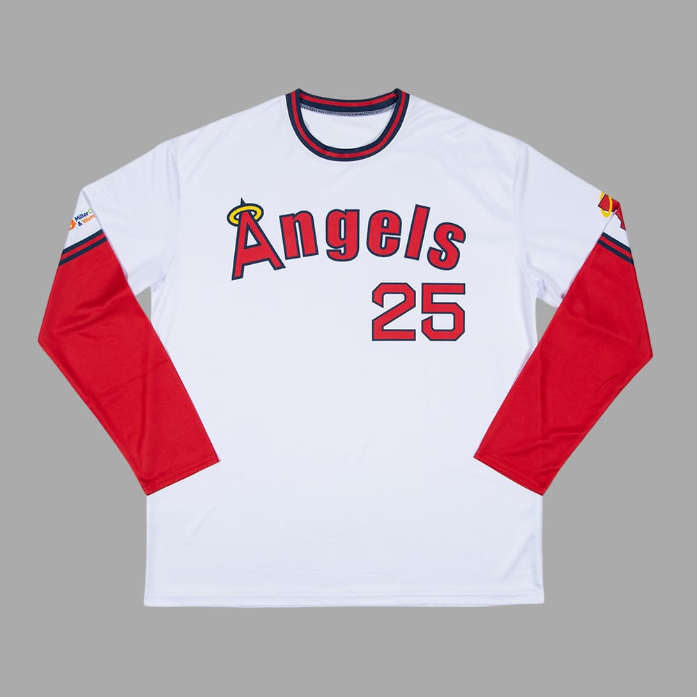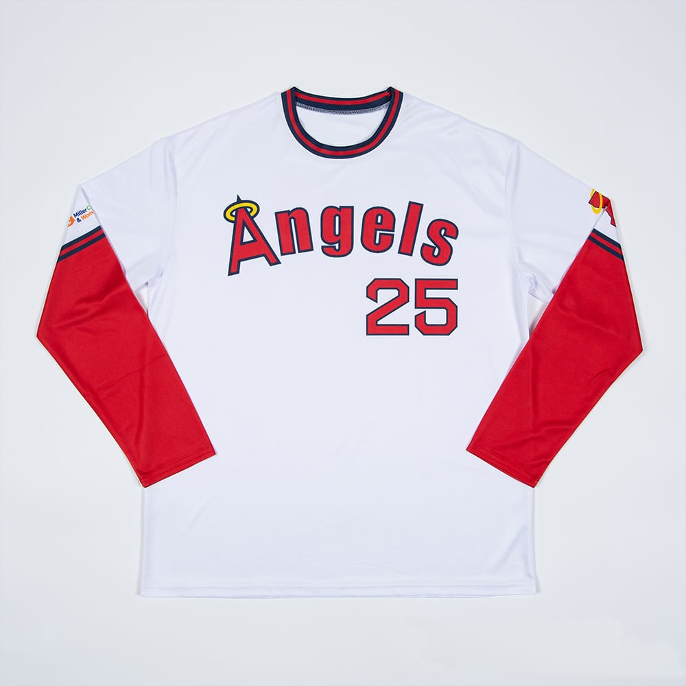 Step into the storied past and electrifying present with the Angels Throwback Long Sleeve Shirt 2025 Giveaway. This commemorative piece isn’t just apparel—it’s a statement. With the bold “Angels” lettering emblazoned across the chest and the revered number “25” prominently featured, the design celebrates an enduring franchise and the inspirational players who’ve worn the number with pride. Whether you’re in the stadium or watching from home, this shirt keeps the spirit of the game alive.