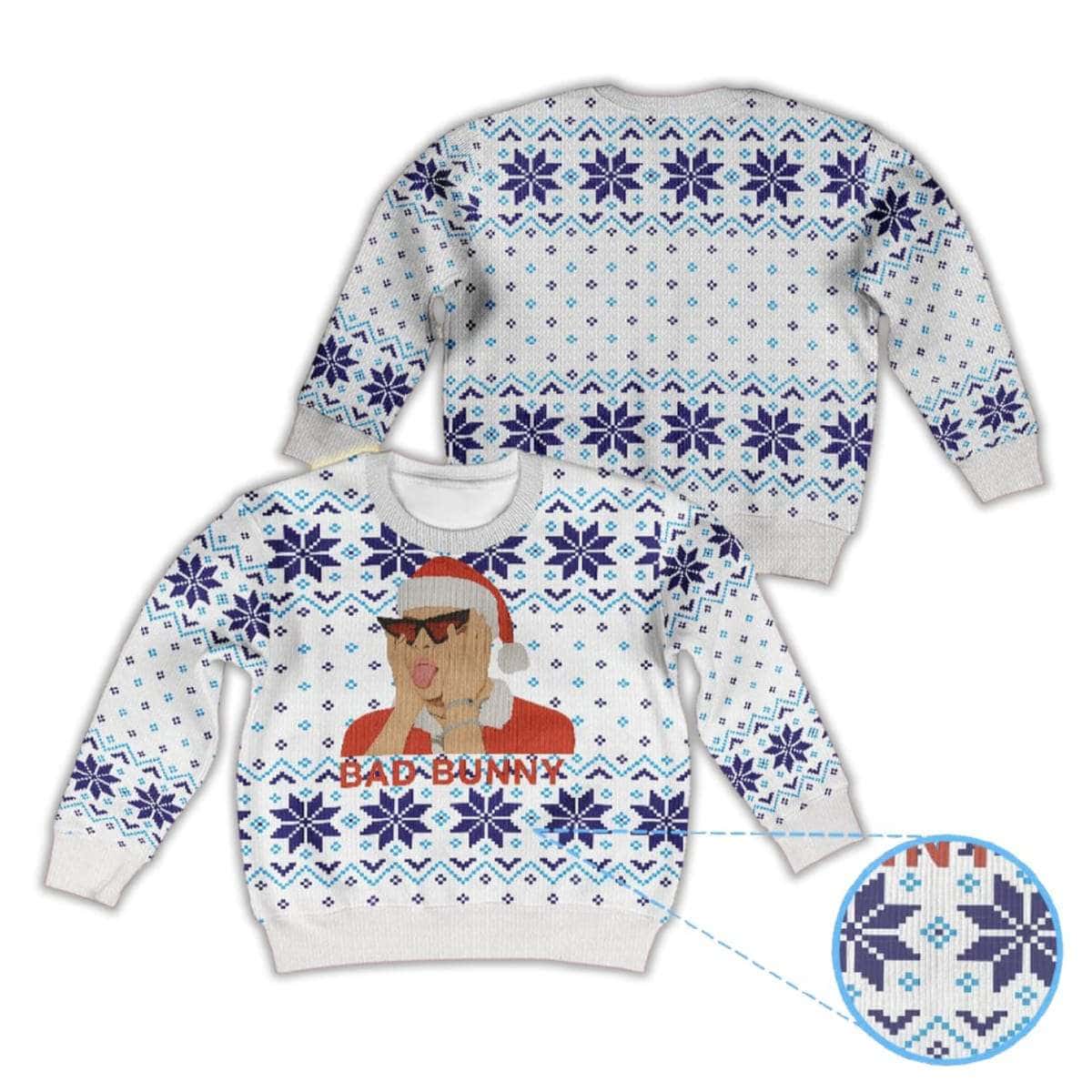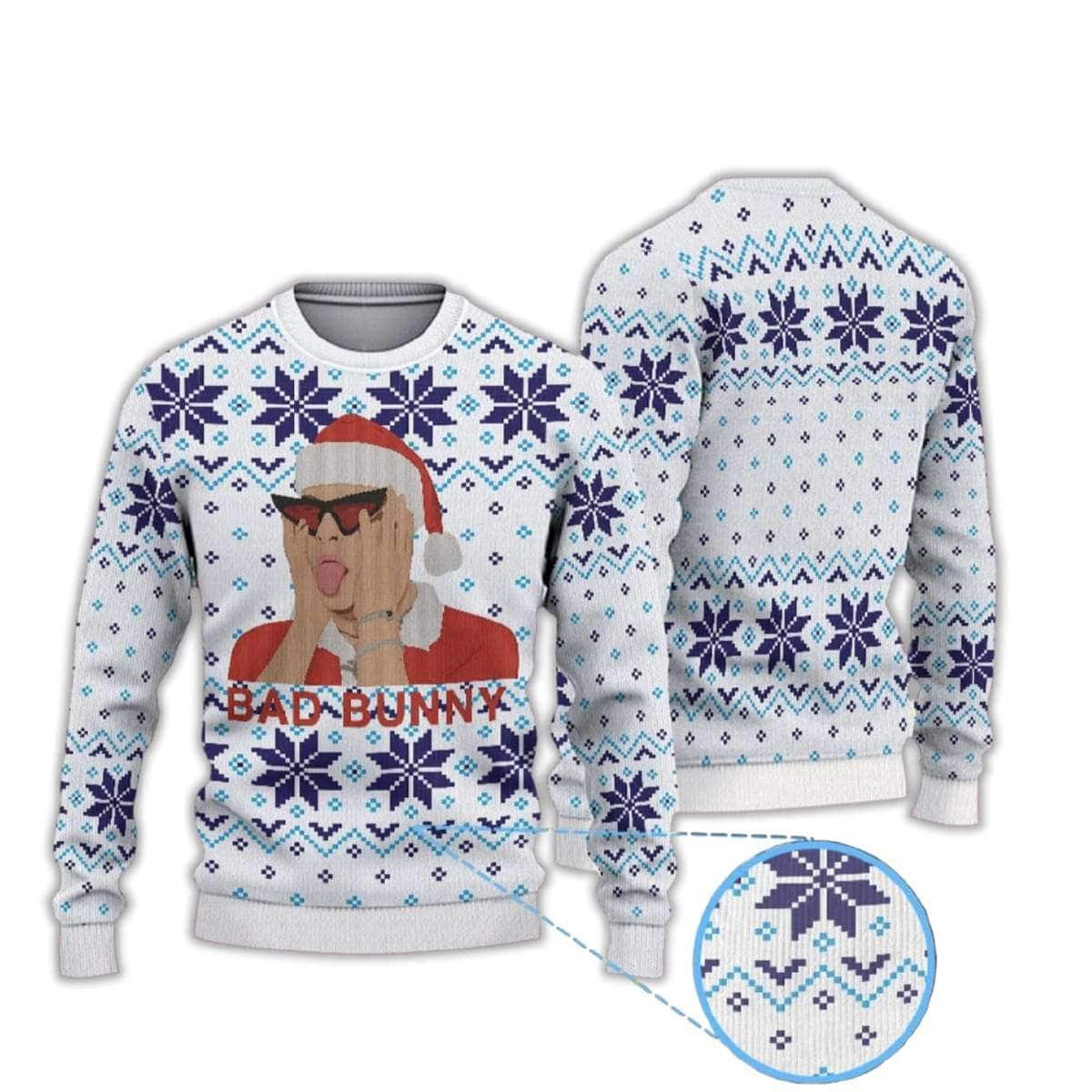 Bad Bunny In Santa Hat Ugly Christmas Sweater – Holiday Pop Icon Energy