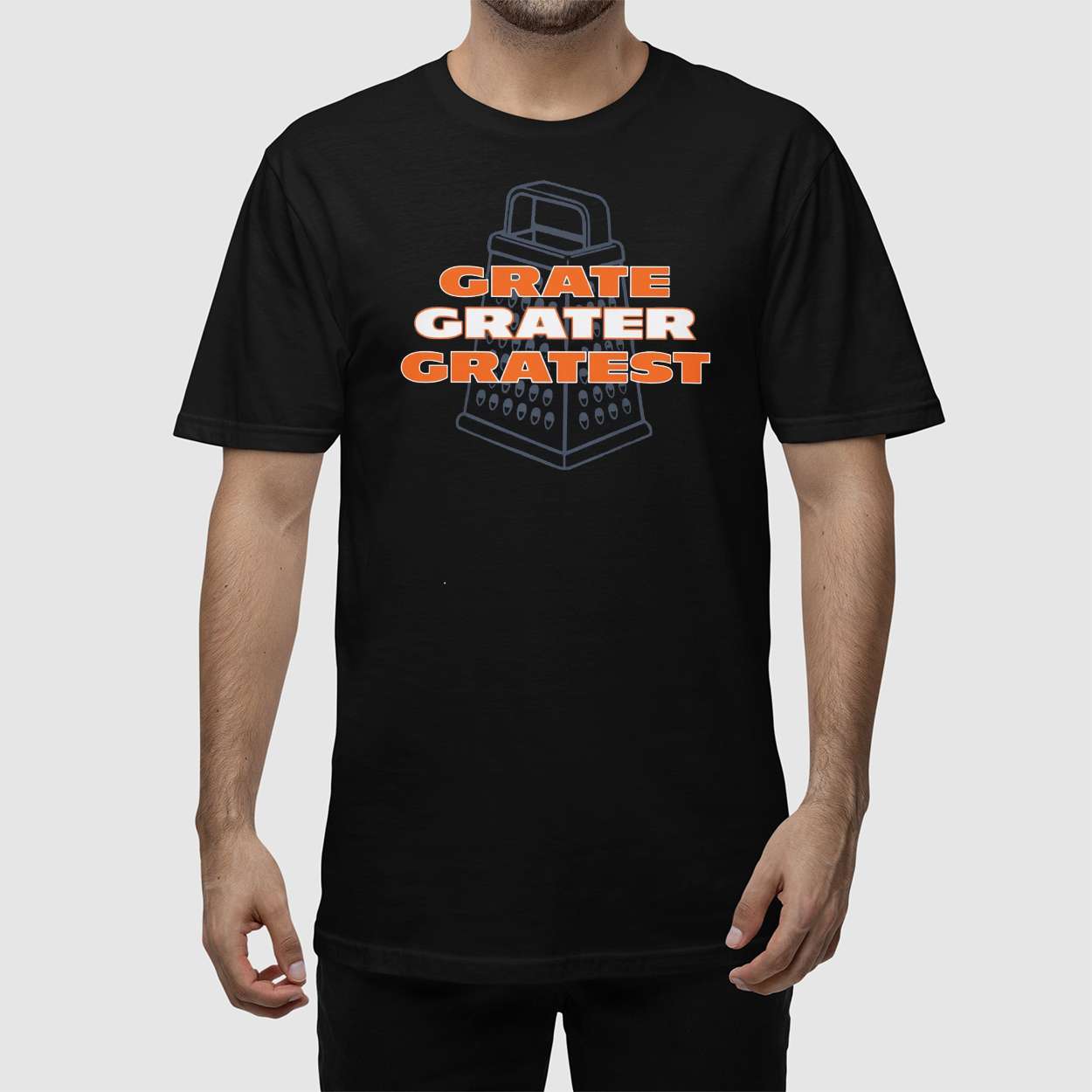 This shirt riffs on the evolution of greatness through a pun-laced lens, using a cheese grater to humorously echo the journey from “grate” to “gratest.” It’s a visual metaphor for growth, resilience, and the quirky ways language shapes perception.