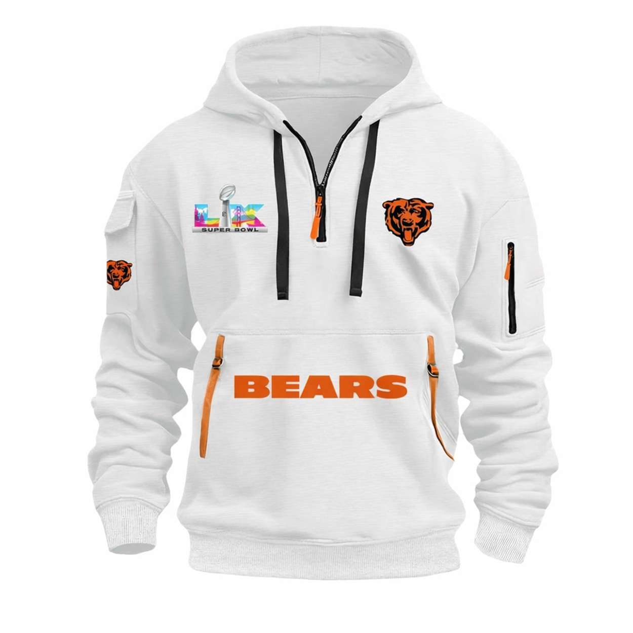 Show your pride with the Bears SBowl 2026 Hoodie Half Zipper. Featuring bold team graphics and Super Bowl LIX details, this hoodie honors Chicago’s resurgence, standout players, and a season that reignited hope across the Windy City and beyond.
