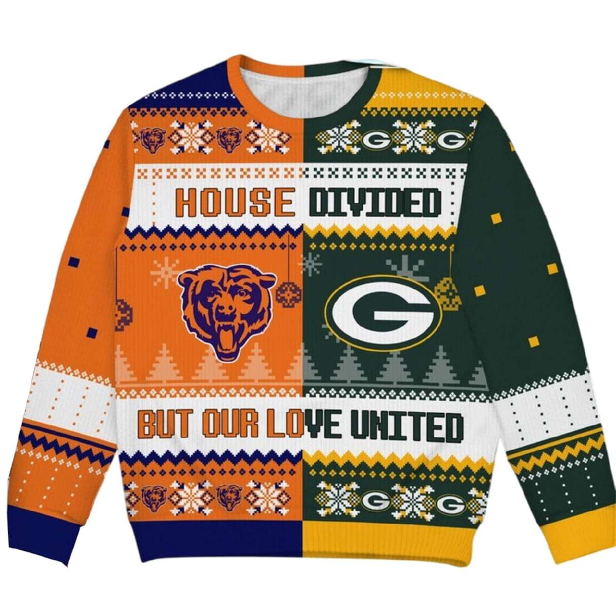 Bears x Packers House Divided Team But Our Love United Christmas Ugly Sweater – Rivalry Meets Romance