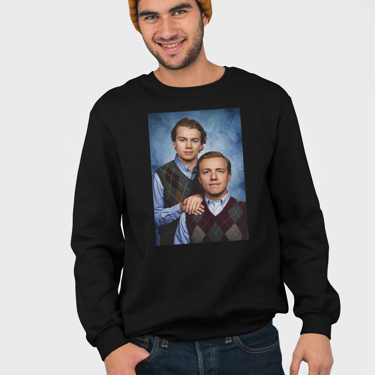 This shirt’s portrait-style design echoes 1980s family photo aesthetics, humorously reimagining hockey camaraderie. It’s a nod to pop culture’s love for awkward charm, blending sports icons with a visual language that fans instantly recognize and adore.