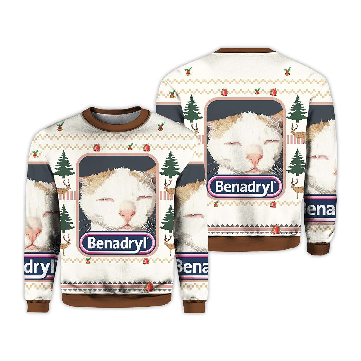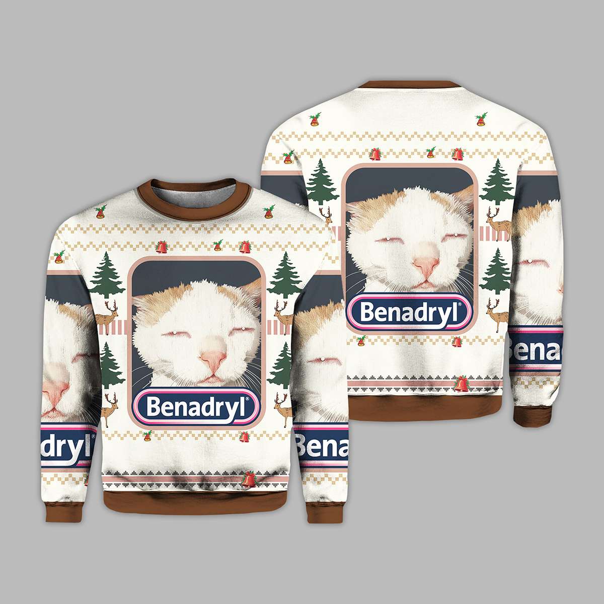 Benadryl Cat Sweater – Viral Humor Meets Holiday Cheer