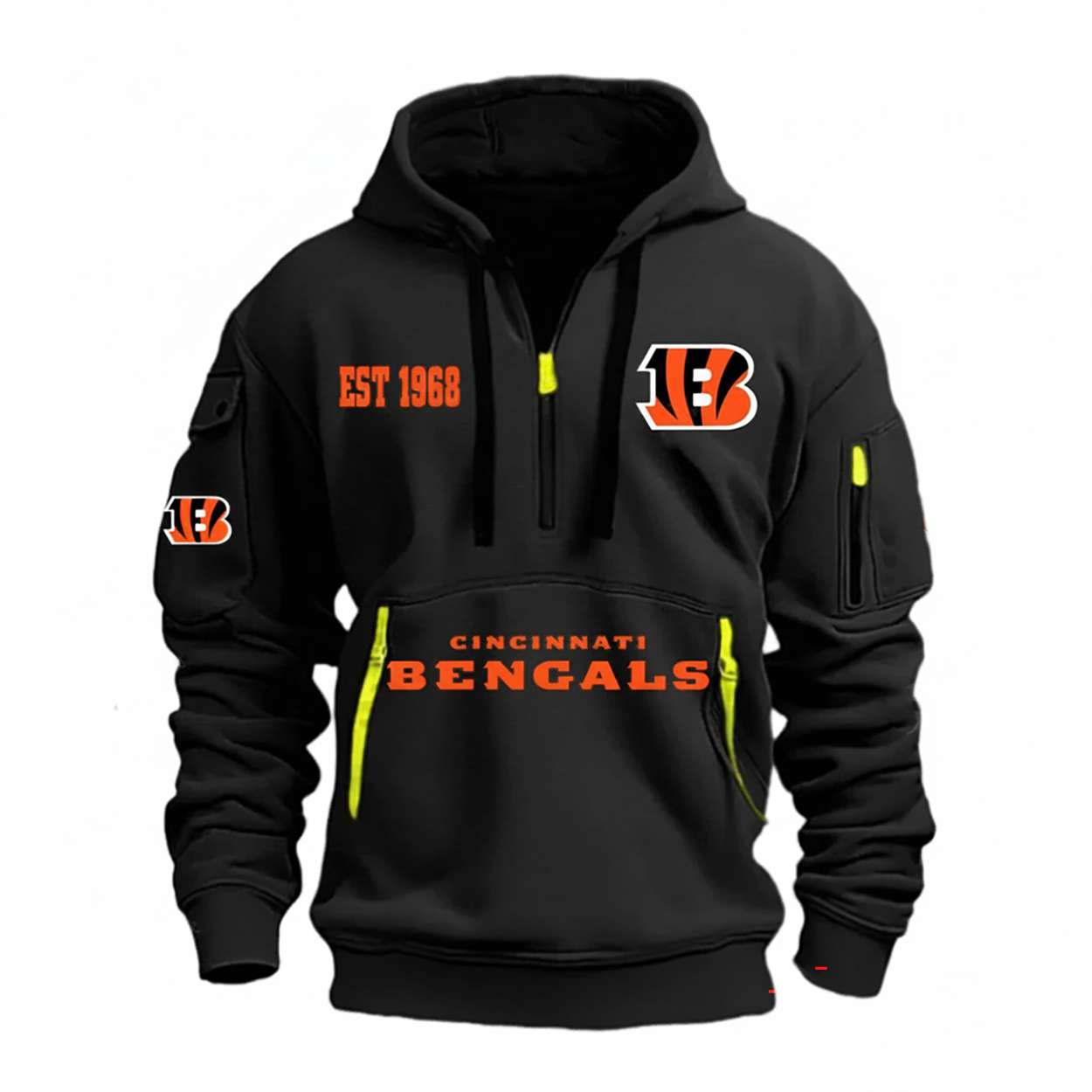 Show your loyalty to Cincinnati’s gridiron legacy with the Bengals Est 1968 HOODIE HALF ZIPPER. Featuring bold graphics and historical flair, this design honors the team’s roots and the enduring spirit of players who shaped football culture.