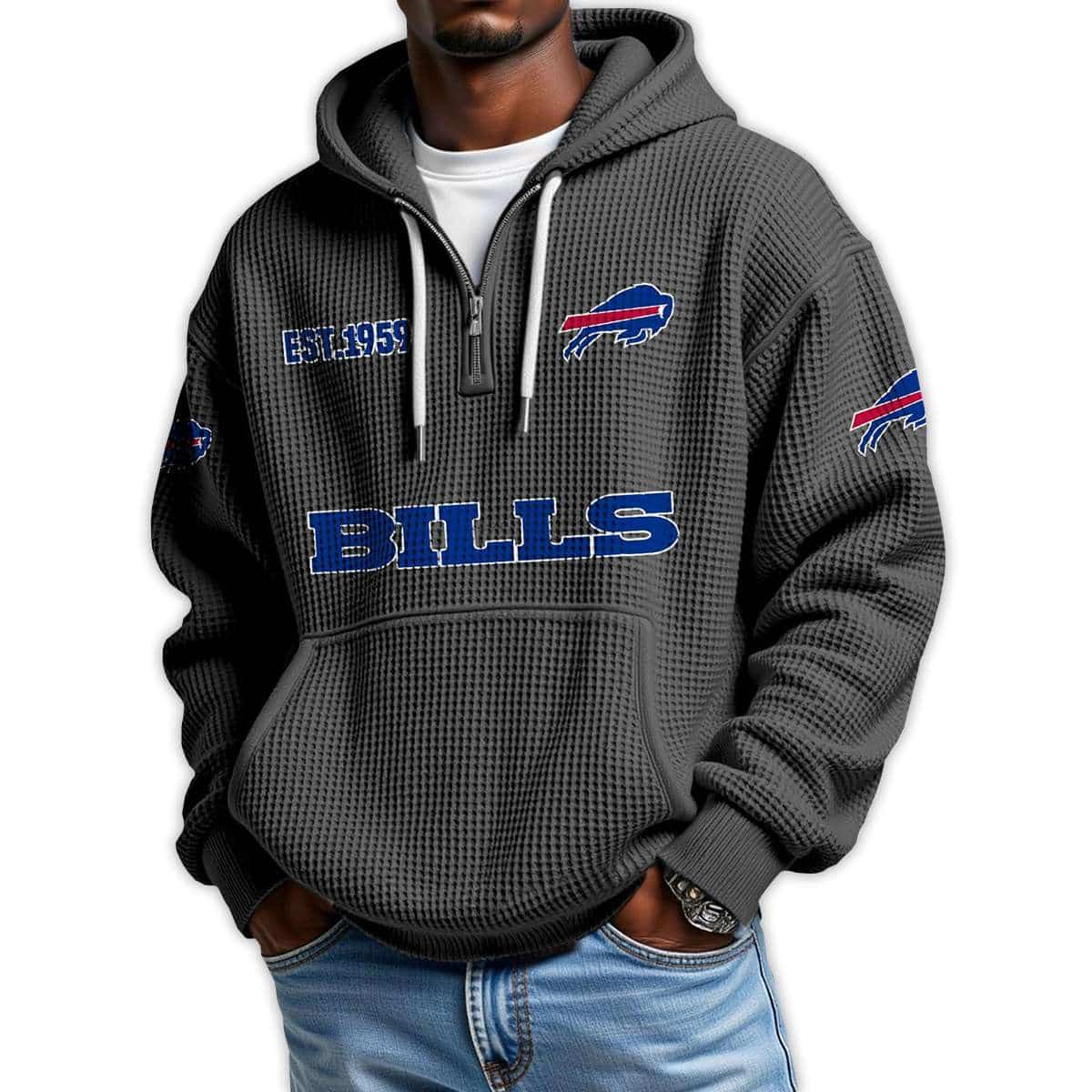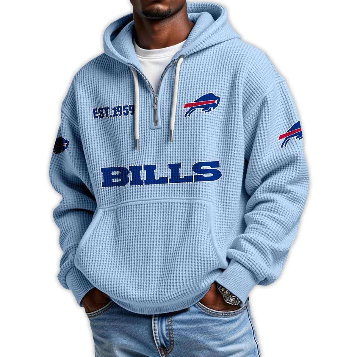 Bills Est 1959 Quarter Zip Waffle Hoodie – Born in Buffalo, Worn with Pride
