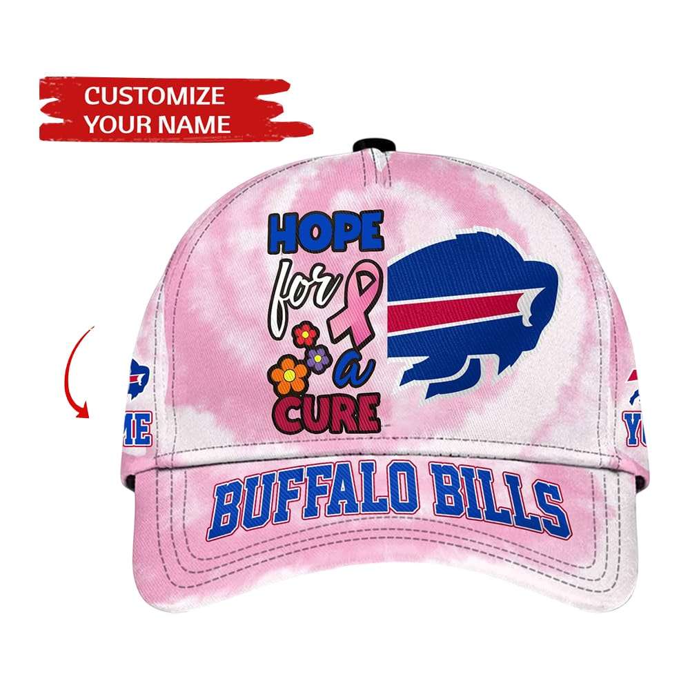 Show unwavering support for breast cancer awareness with the Bills Hope For A Cure Breast Cancer Awareness Hat. Featuring the iconic pink ribbon, Buffalo Bills logos, and customizable name detail, this cap honors resilience and community while amplifying a powerful message of hope and unity.