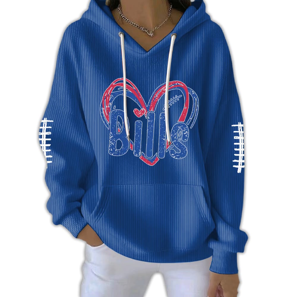 The Bills Love Football Pit Striped Hoodie echoes the fearless energy of fans who’ve stood through snow, rain, and glory since Buffalo’s earliest seasons. Its heart-shaped design symbolizes a city’s unwavering devotion — generations connected by the shared rhythm of game day roars and underdog victories.