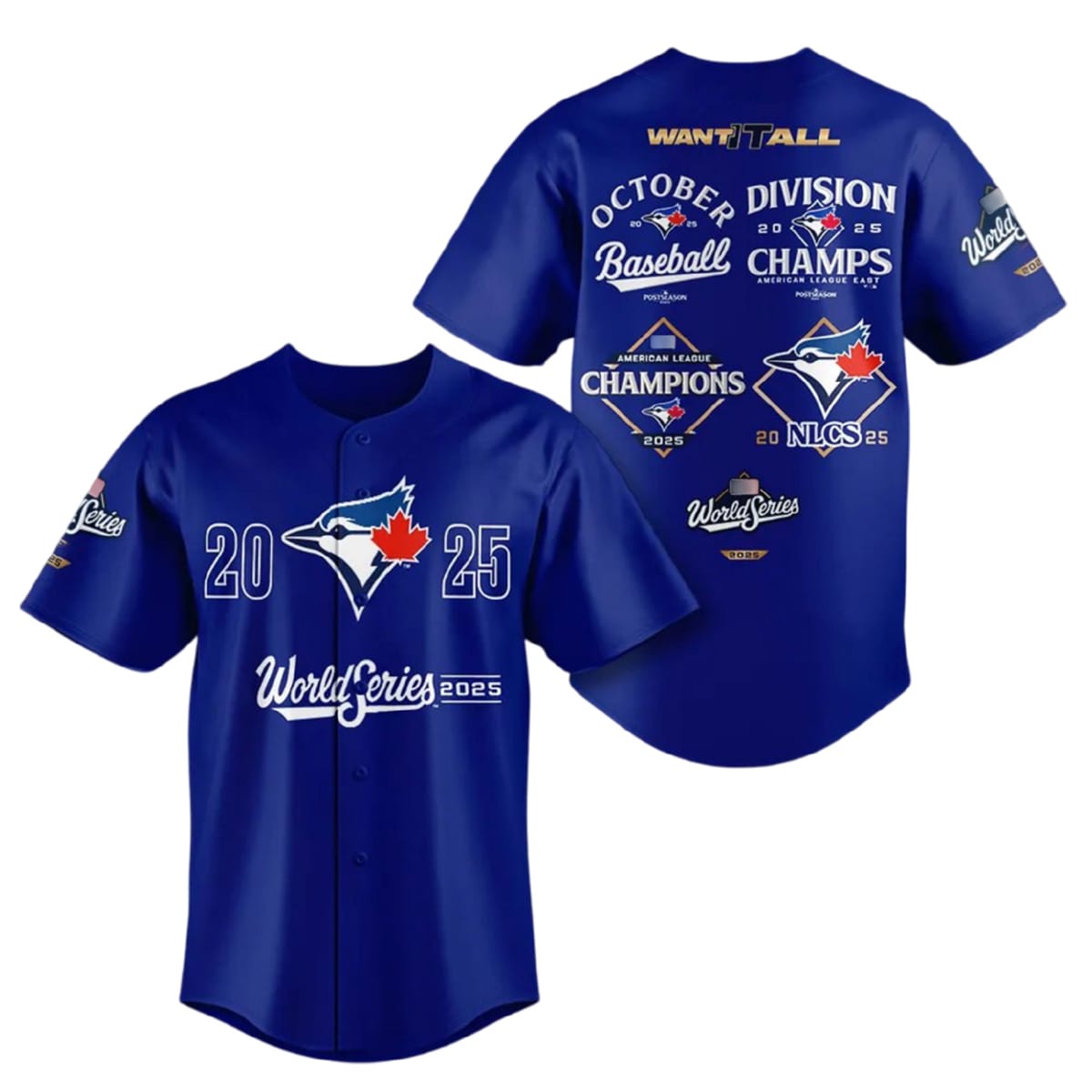 Torontoâs 2025 postseason was more than a championshipâit was a cultural moment. This jersey captures the Blue Jaysâ electrifying journey through October, with bold graphics like âDivision Champsâ and âAmerican League Championsâ stitched across the back as a tribute to their dominance.
