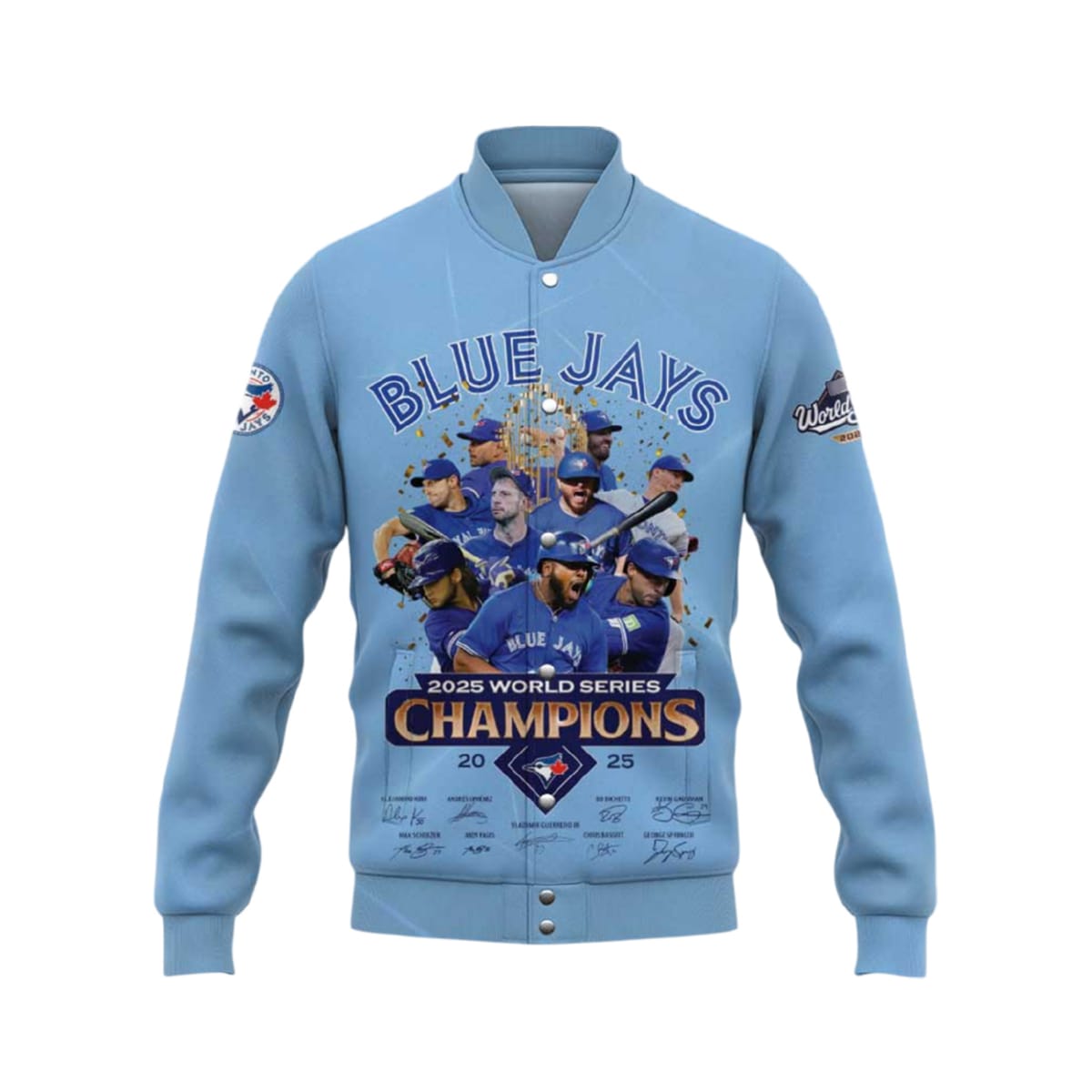 Relive the epic 2025 World Series showdown with the Blue Jays Canada 2025 World Series Champions Jacket. Featuring game highlights, iconic players, and a nation’s baseball dream realized—this jacket captures the heart of Toronto’s unforgettable victory.