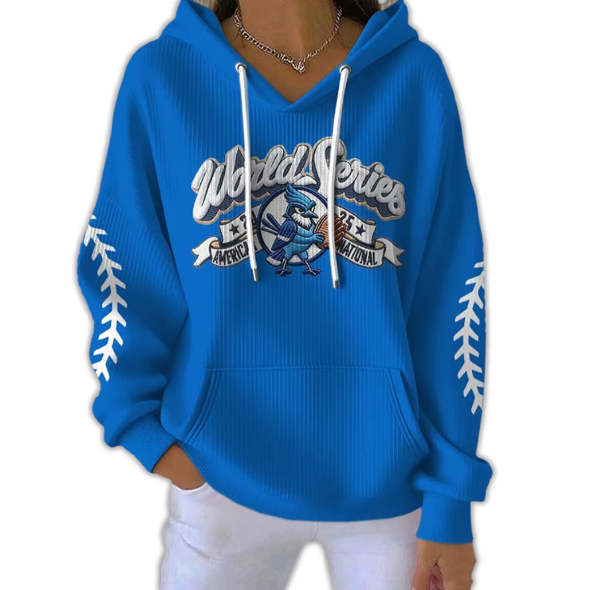 Striped sleeves mimic baseball stitching, symbolizing the thread that binds fans to the game’s deeper narrative—where sport meets social change. From stadium chants to streetwear statements, this hoodie speaks to resilience, teamwork, and the pulse of Toronto.