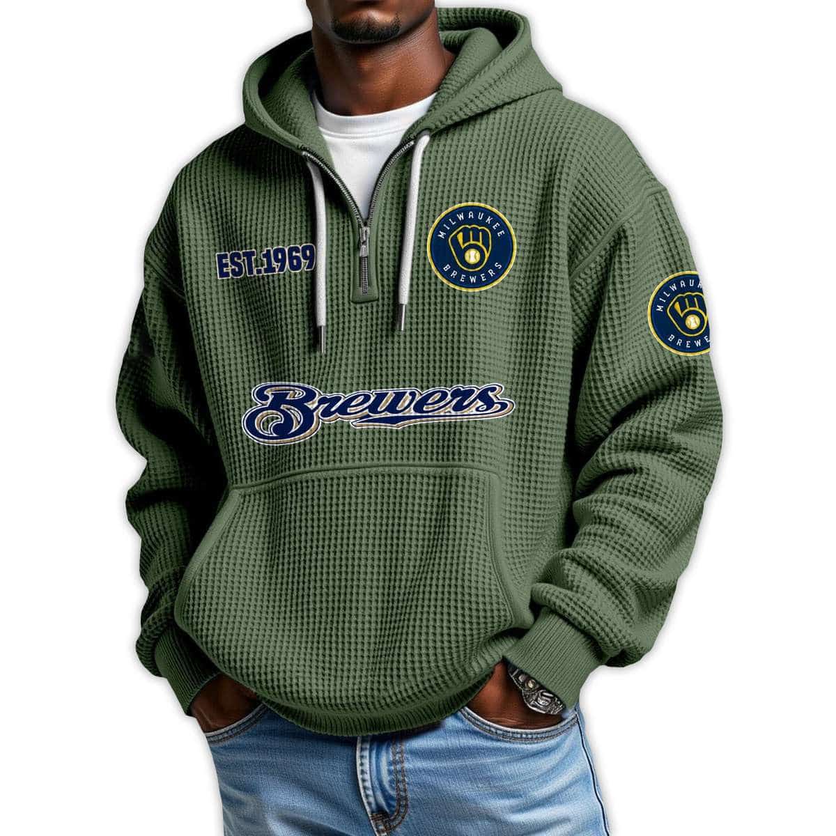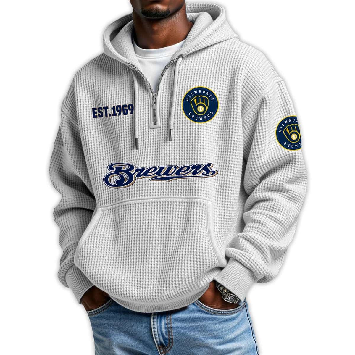Show your Milwaukee pride with the Brewers Est 1969 Quarter Zip Waffle Hoodie. Featuring iconic team graphics and historical nods to baseball legends, this hoodie connects fans to the Brewers’ roots, community spirit, and unforgettable moments in American sports history.